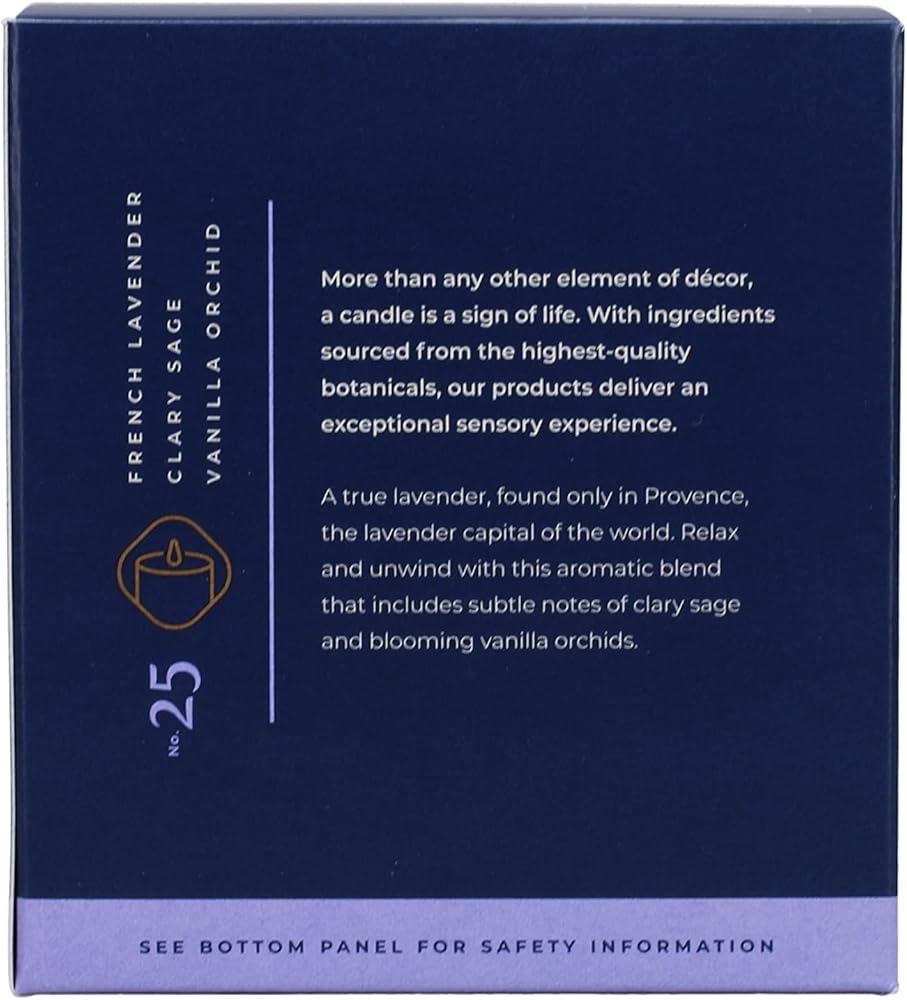 FLORAL PROVENCAL BLISS: French Lavender, Clary Sage, and Vanilla Orchid converge in a calming aromatic dance. Journey to serene lavender fields, where the air is a delicate blend of soothing herbs and the sweet allure of vanilla, transporting you to a tranquil countryside haven.
