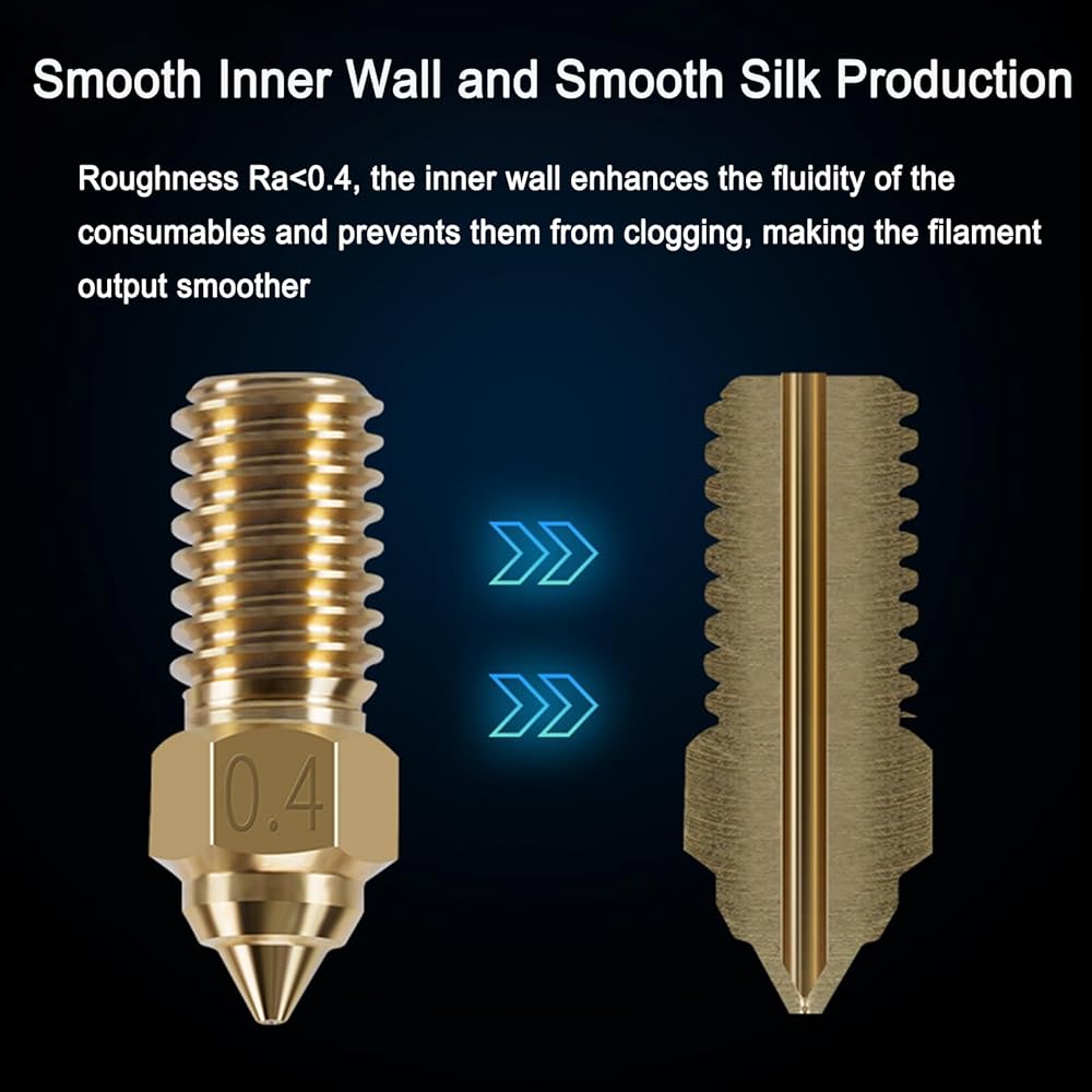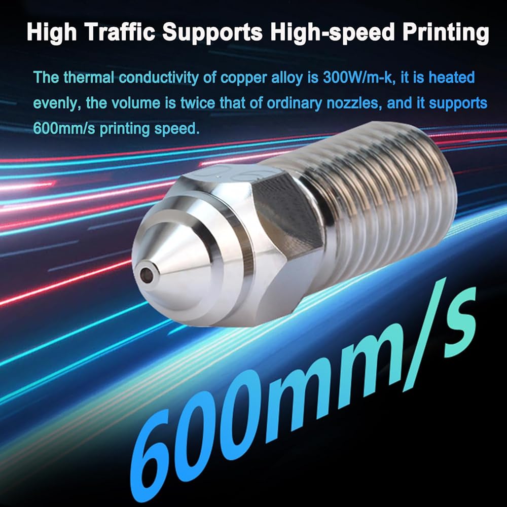 • High Precision: These 3D printer nozzles keep a stable temperature during printing and let the filament out evenly, also with higher print speed in the same print precision, it supports 600mm/s printing speed. Not easily clogged during printing, easy to clean. Made with centering CNC precision automatic lathe and one-time forming technology, make sure the input and output holes are concentric and the interior of the nozzle is smooth without burrs