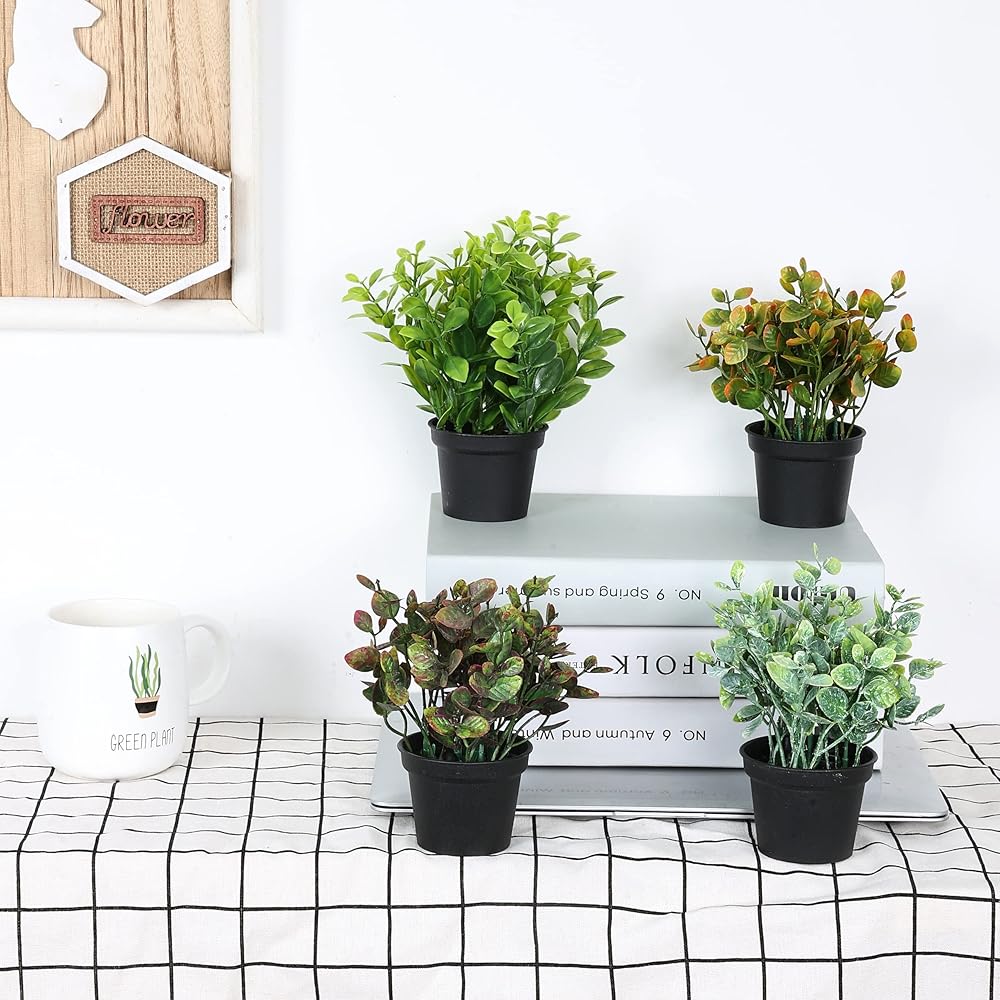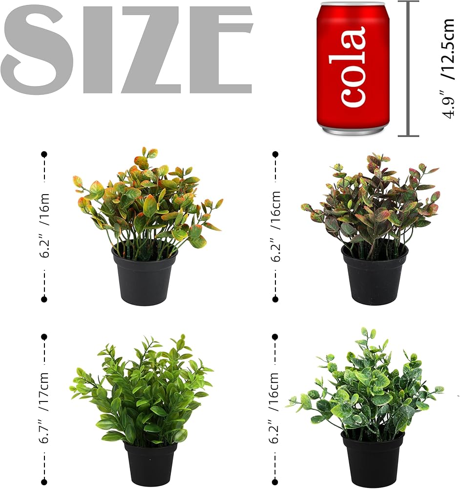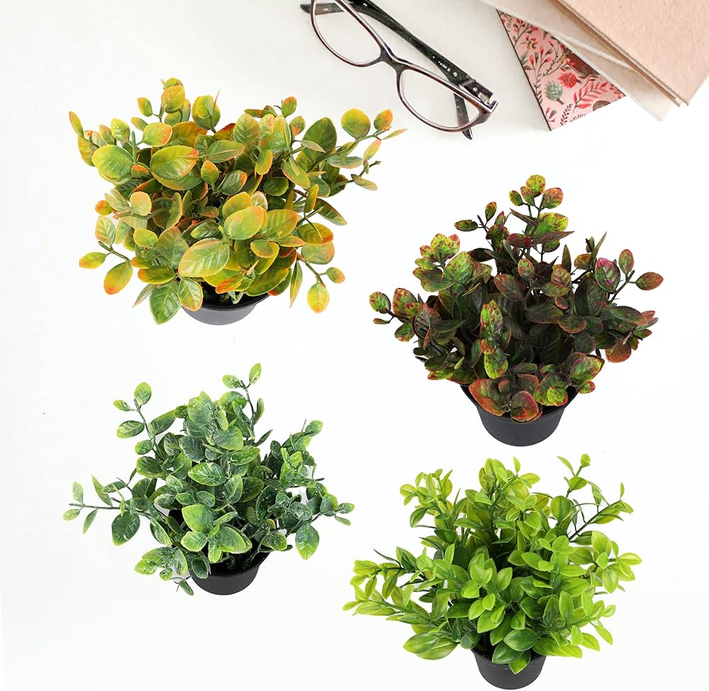 Jusdreen نباتات صناعية بوعاء - مجموعة من 4 زهور صناعية بوعاء نباتات صناعية ديكور منزلي نباتات صناعية صغيرة لتزيين مكتب المكتب