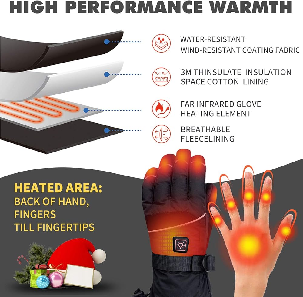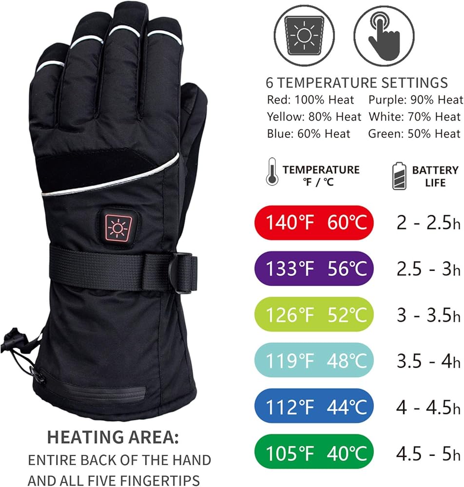 【تسخين كامل تمامًا】تغطي عناصر التسخين ظهر اليدين بالكامل، كل إصبع على حدة حتى أطراف الأصابع. ستبقى يديك بالكامل دافئة في الشتاء البارد مع هذه القفازات الساخنة عند ركوب الدراجات، والتزلج، والمشي لمسافات طويلة، والتزلج، وصيد الأسماك على الجليد، والمشي مع كلبك... وهي هدية مثالية لأولئك الذين يعانون من رينود، والتهاب المفاصل، ضعف الدورة الدموية وتيبس المفاصل.