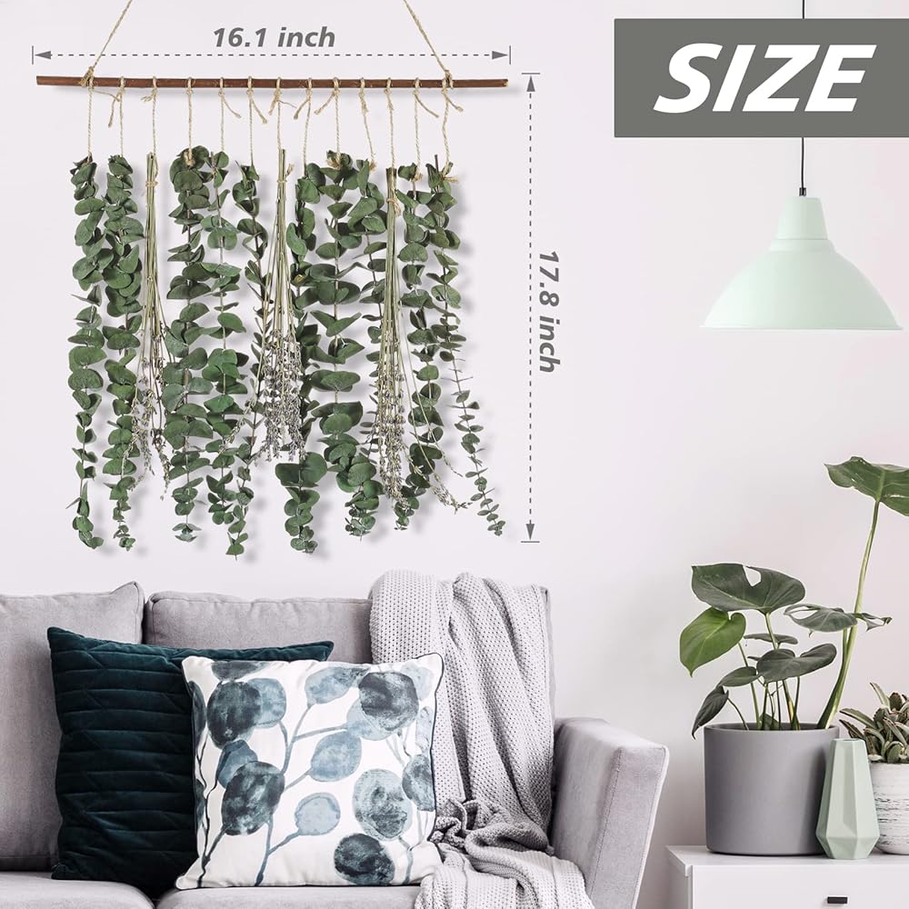 الحجم المناسب للديكور: يبلغ طول الخشب الصلب حوالي 16.8 بوصة وقطره 0.78 بوصة.. يبلغ طول الأوكالبتوس 13.8 بوصة. مناسب لتزيين المشاهد المختلفة. نظرًا لأن كل قطعة مصنوعة يدويًا، يرجى السماح باختلافات طفيفة في مظهر تعليق الحائط الخاص بك.