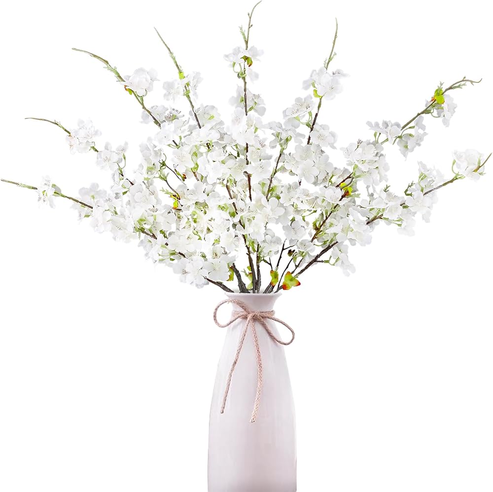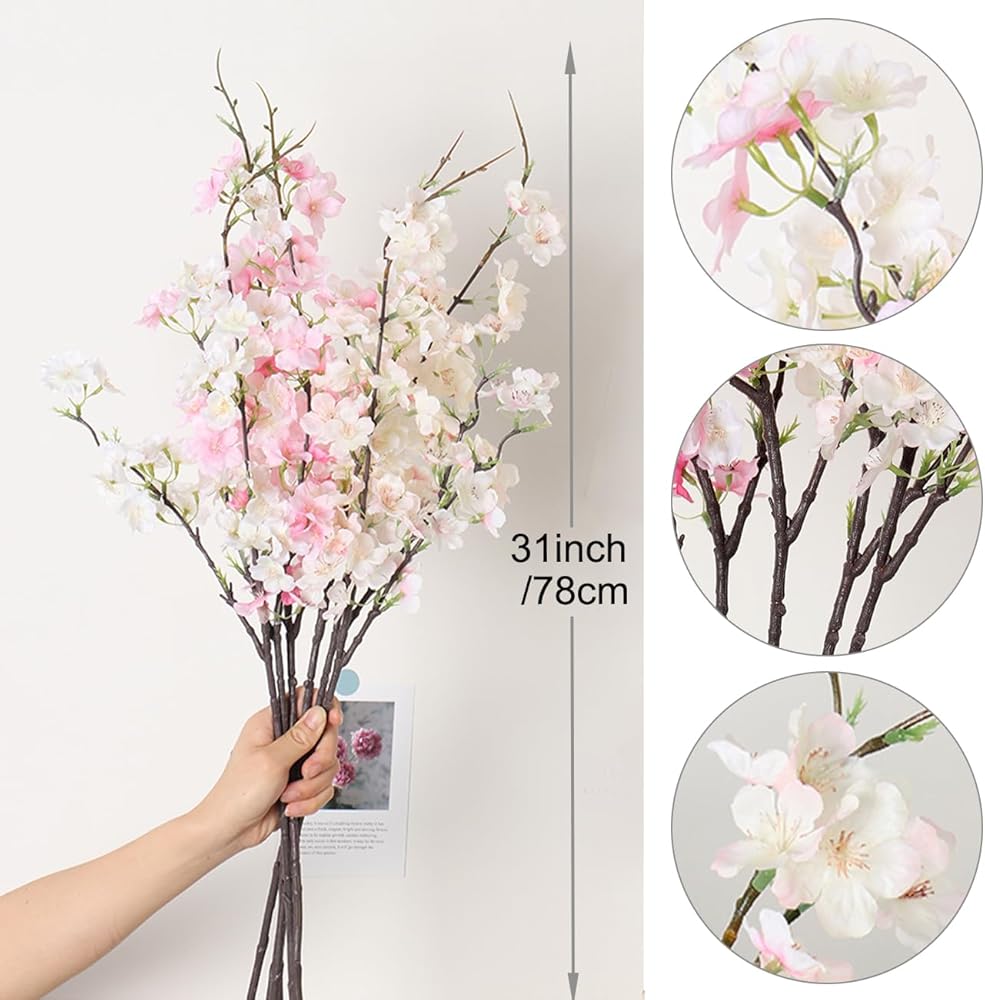 الحجم والعبوة - سوف تحصل على 4 قطع من زهور الكرز الحريرية ذات جذع واحد، الطول الإجمالي 31 بوصة والساق 15 بوصة.