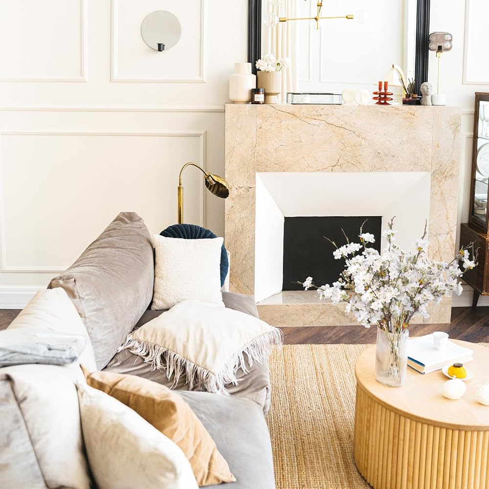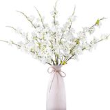 المادة - زهر الكرز مصنوع من الحرير والساق مصنوع من البلاستيك مع سلك حديد بالداخل. يمكن ثني السيقان لتناسب أي حجم من المزهريات.