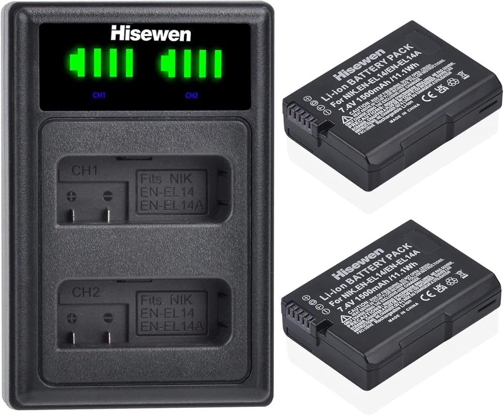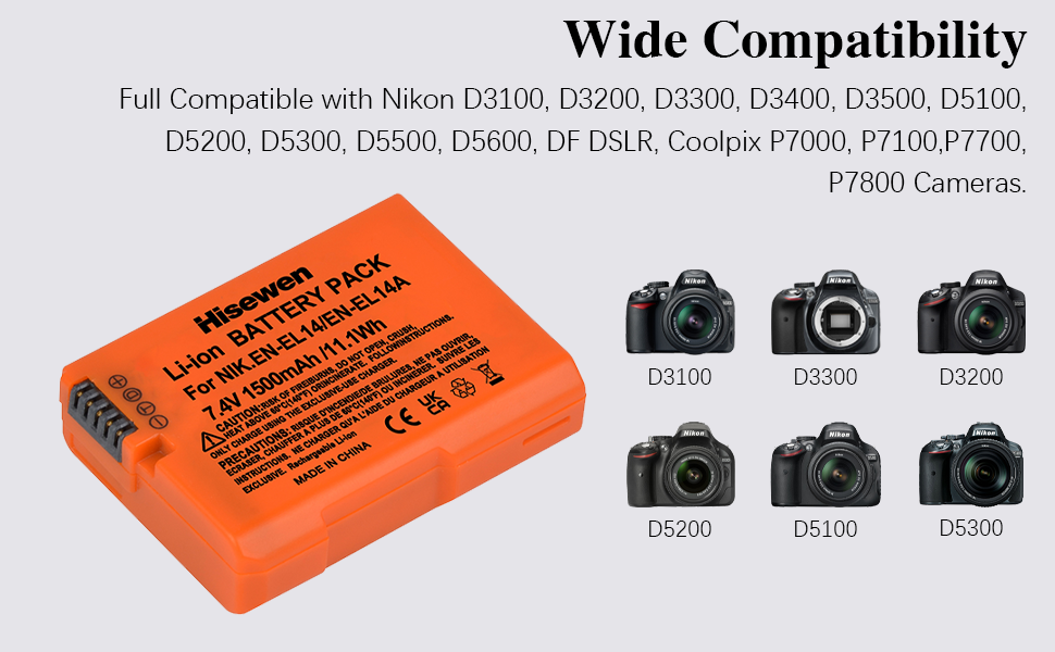 【قائمة العبوات】 1 × بطارية EN-EL14 (برتقالية)، 1 × شاحن LED، استرداد الأموال لمدة 30 يومًا، ضمان لمدة 12 شهرًا.