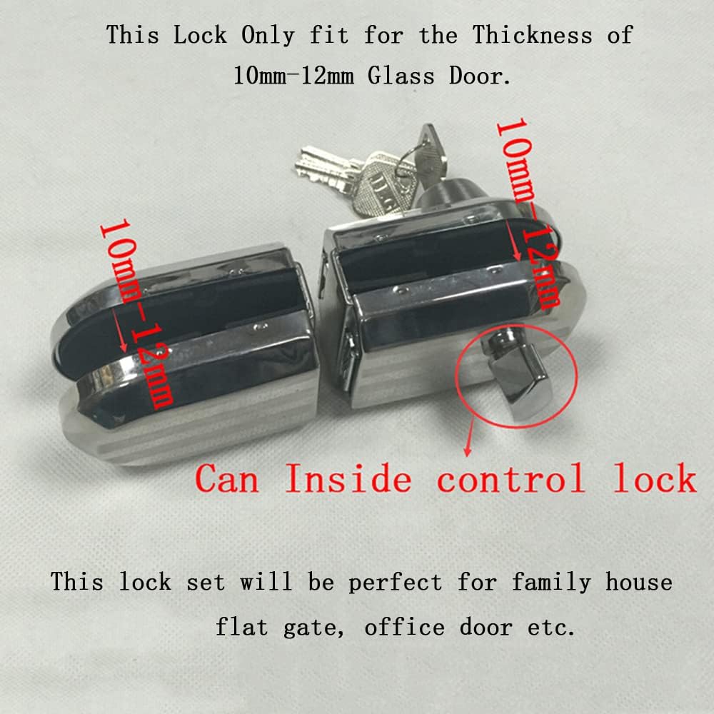 * This Lock Only fit for the Thickness of 10mm-12mm Glass Door, Single Swing(The other door must be fixed and cannot swing), 4MM-10MM gap between the two glass door.