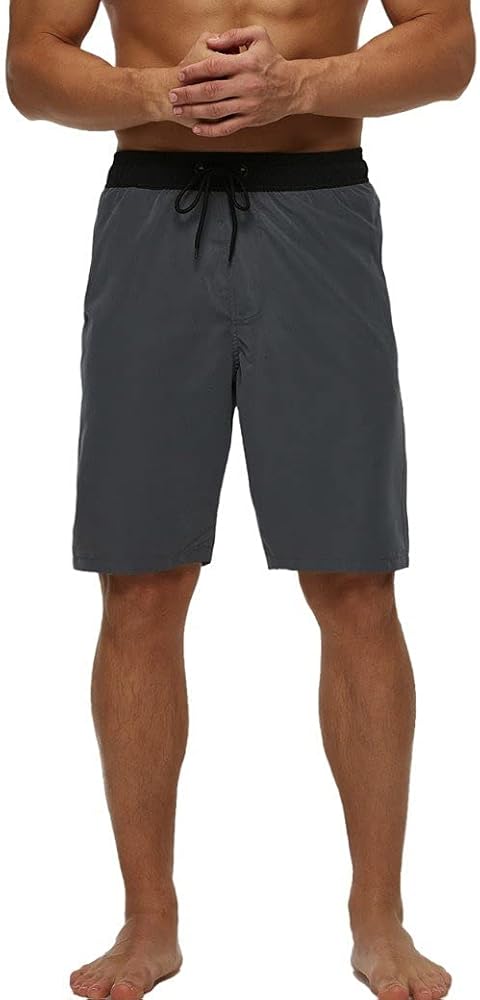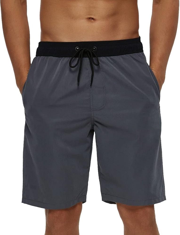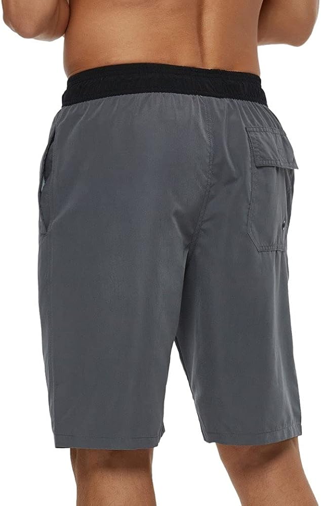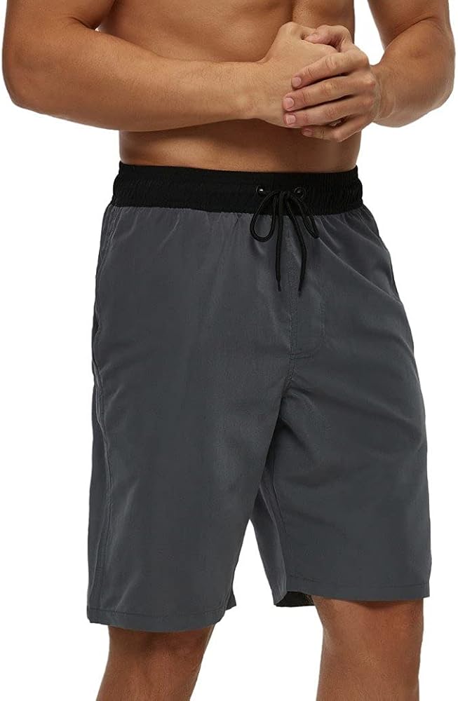 SILKWORLD شورت سباحة رجالي سريع الجفاف شورت سباحة رياضي مع جيوب، أسود/رمادي، مقاس صغير