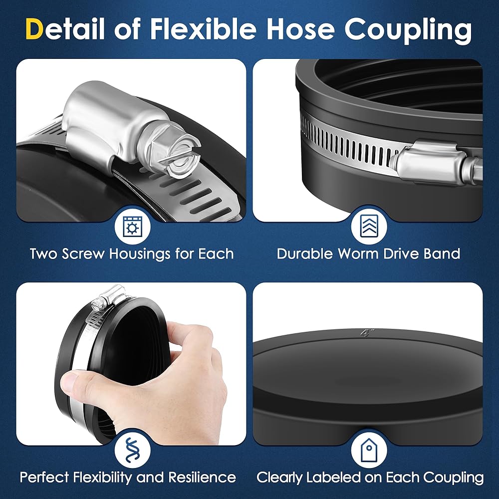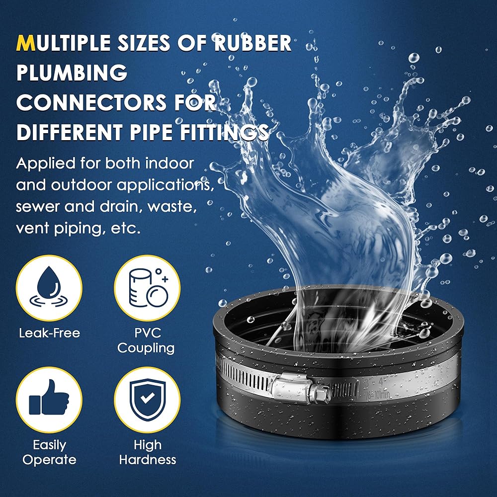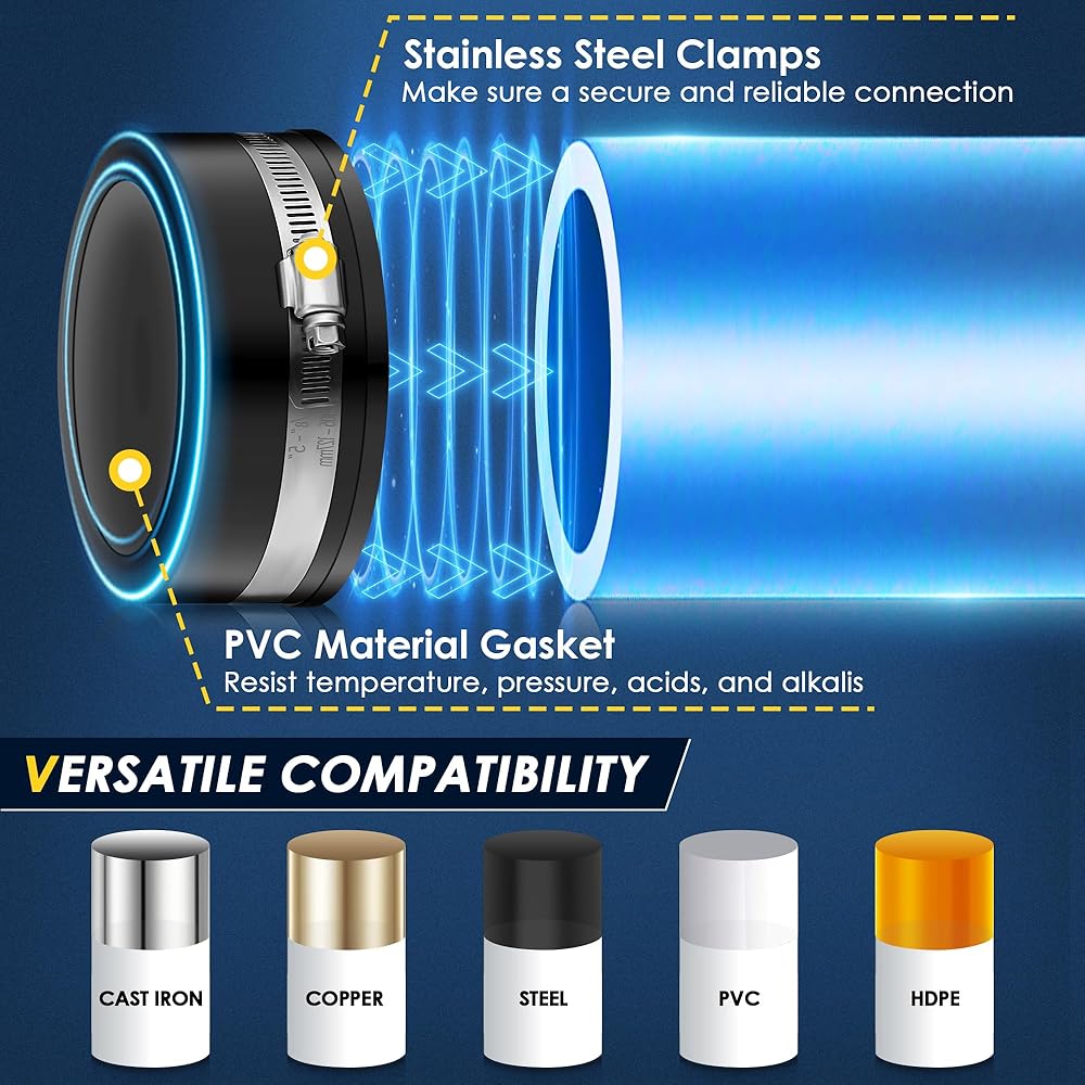 Made from quality flexible PVC, these pipe cap offer excellent flexibility and resilience, suitable for connecting PVC, cast iron, copper, steel, and other pipe materials. The stainless steel clamps provide added strength and corrosion resistance, ensuring a secure and leak free connection.