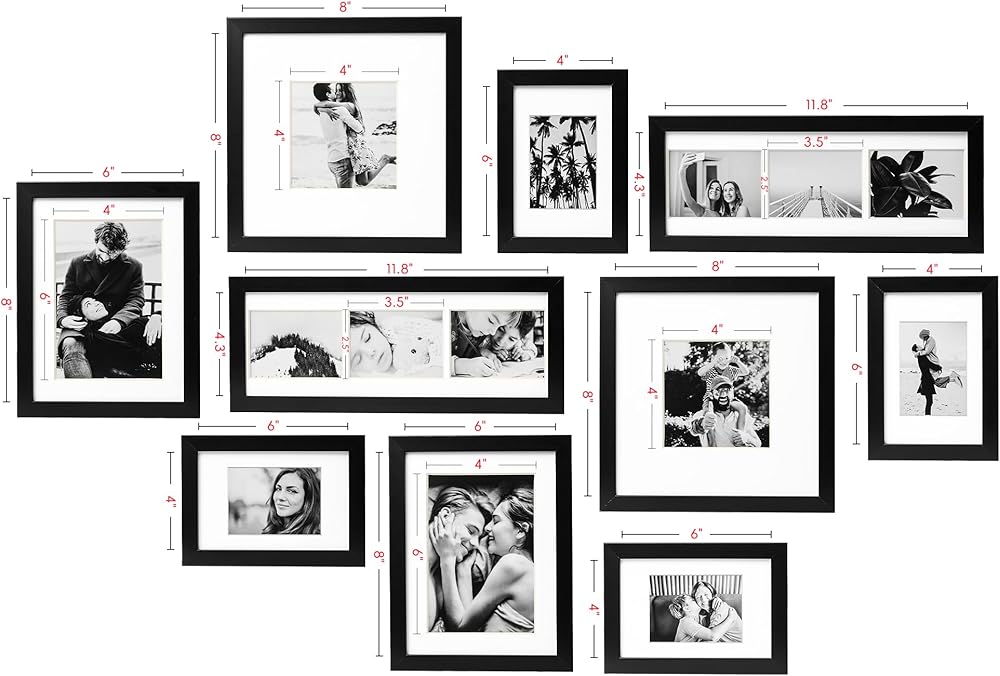 - إرشادات الحجم: 10 لوحات لـ 14 صورة - قطعتان مقاس 16 × 16 بوصة مطفية حتى 6 × 6 بوصة، قطعتان مقاس 12 × 16 بوصة مطفية حتى 6 × 8 بوصة لـ 6 صور، قطعتان مقاس 24 × 6.8 بوصة مطفية حتى 4 × 6 بوصة، و4 قطع مقاس 9.5 × 8 يمكن عرضها بمقاس 4 × 6 بوصة صورة مع الحصير
