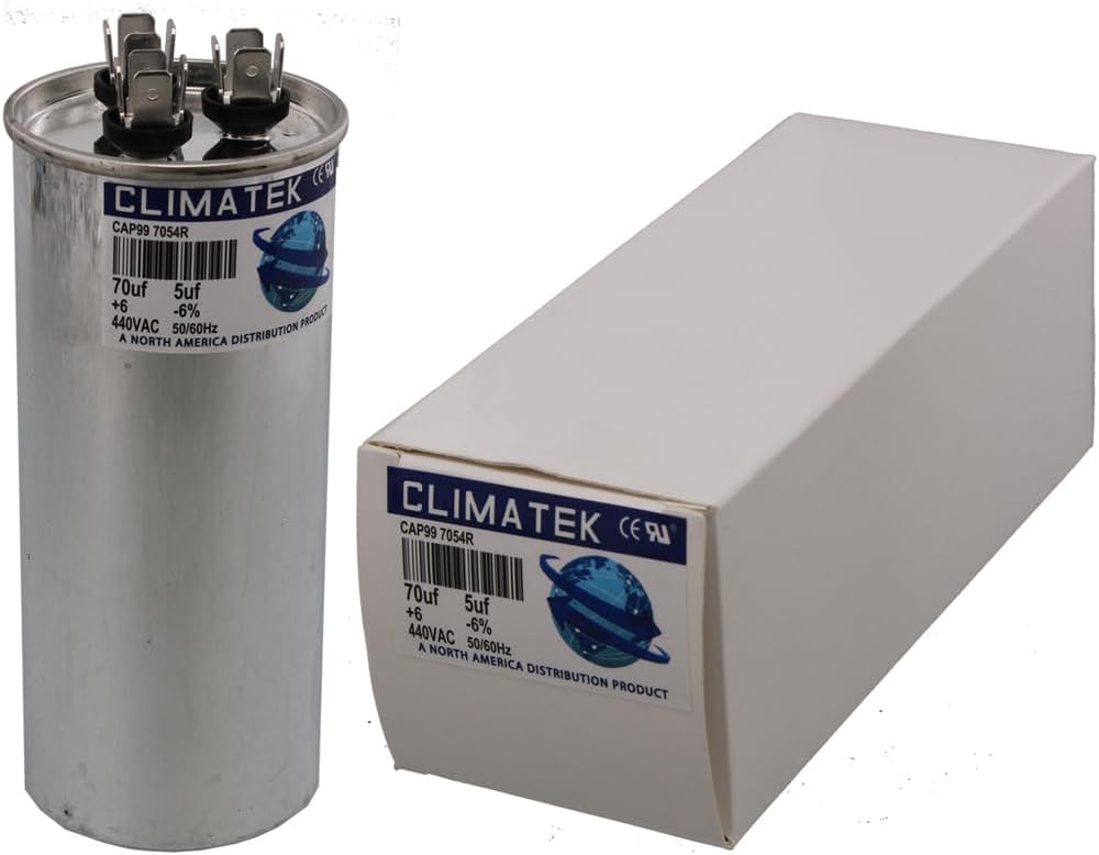 مكثف دائري ClimaTek - يناسب Goodman # CAP050700440RTP | 70/5 فائق التوهج MFD 370/440 فولت تيار متردد