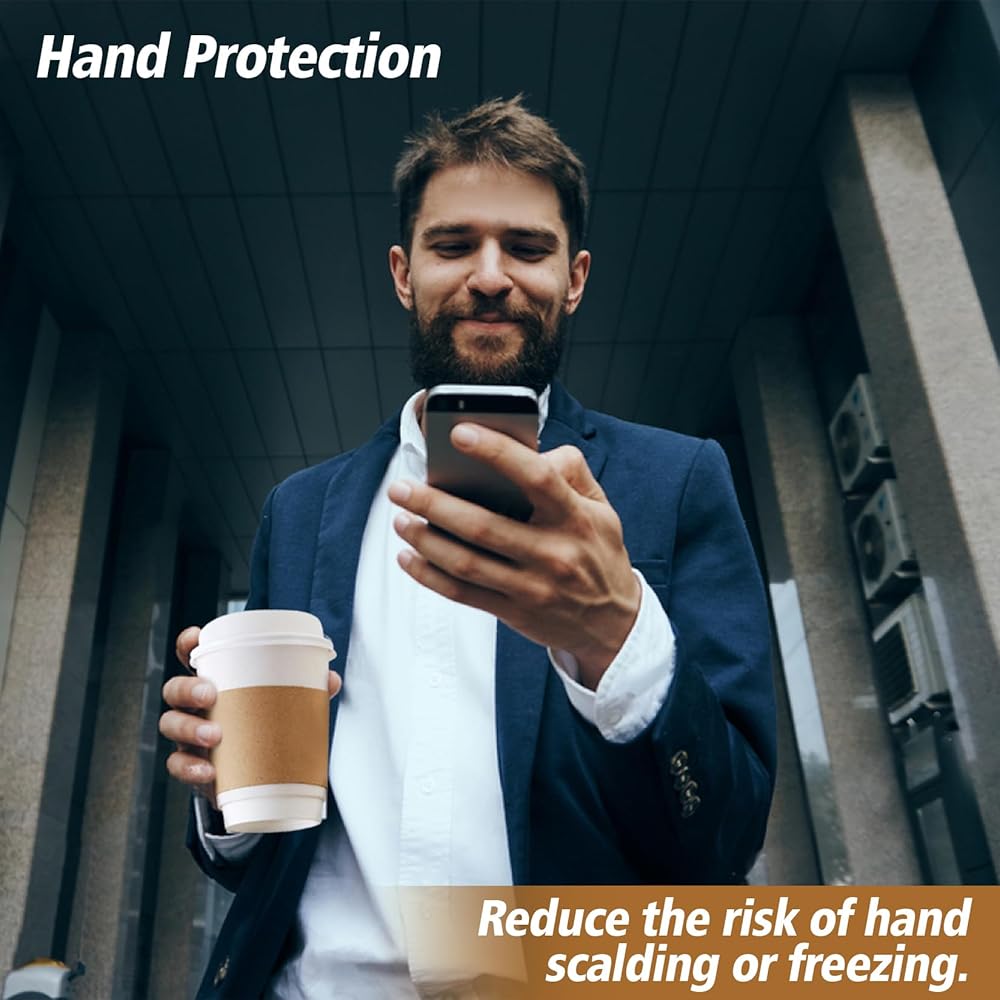 يحمي أصابعك: يمكن للورق المموج أن يعزل اليد عن الاتصال المباشر بالكوب، مما يوفر حماية لليد وتجنب الانزعاج الناتج عن المشروبات الساخنة أو الباردة. وتوفر البطانة المموجة قبضة قوية وتمنع أي انزلاق غير مناسب.