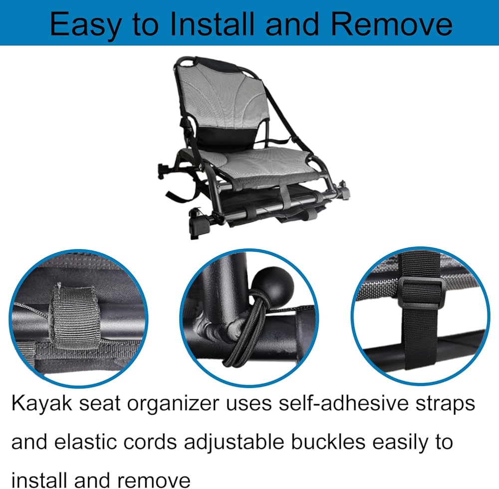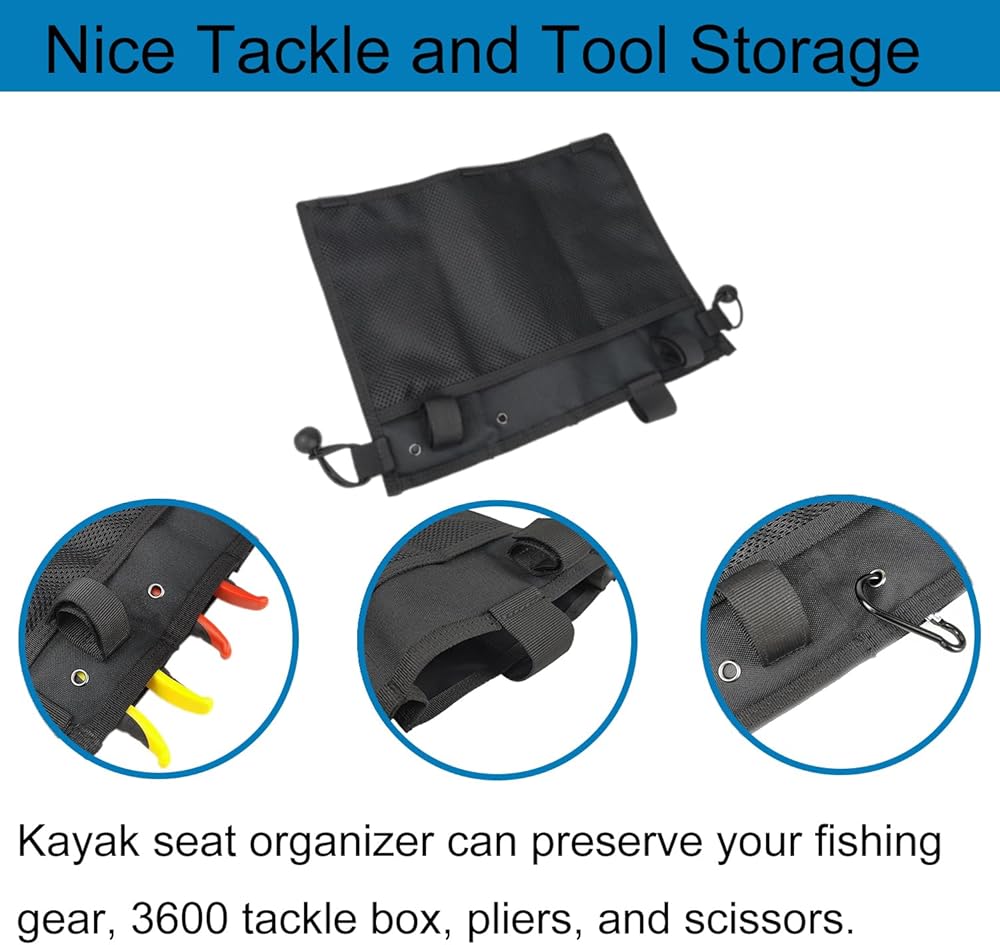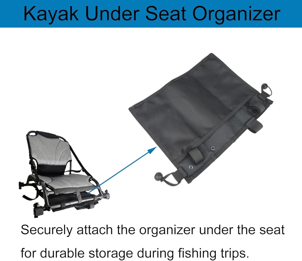 Tidy Organization: Elevate your fishing gear with a kayak under-seat organizer featuring gear storage and a tool holder.