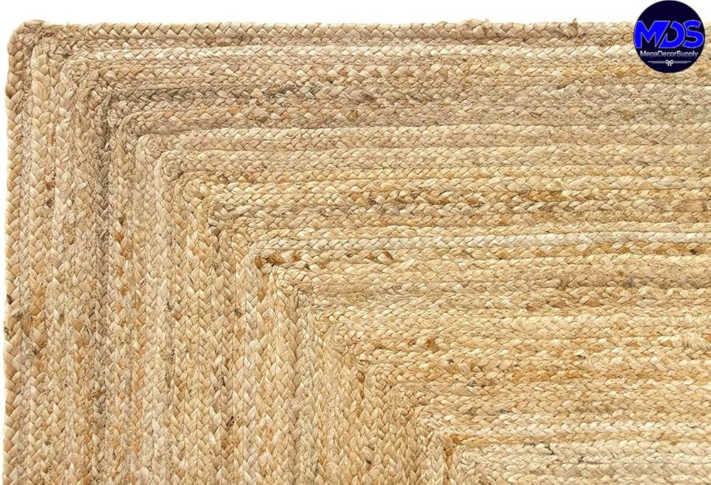 مصنوعة يدويًا من ألياف الجوت الطبيعية الناعمة بنسبة 100% عالية الجودة بسمك الوبر 0.5 بوصة لدعم أسفل القدم والمظهر الأنيق. تظهر هذه السجادة اختلافات طفيفة في اللون والنسيج، مما يعزز تفردها وسحرها.