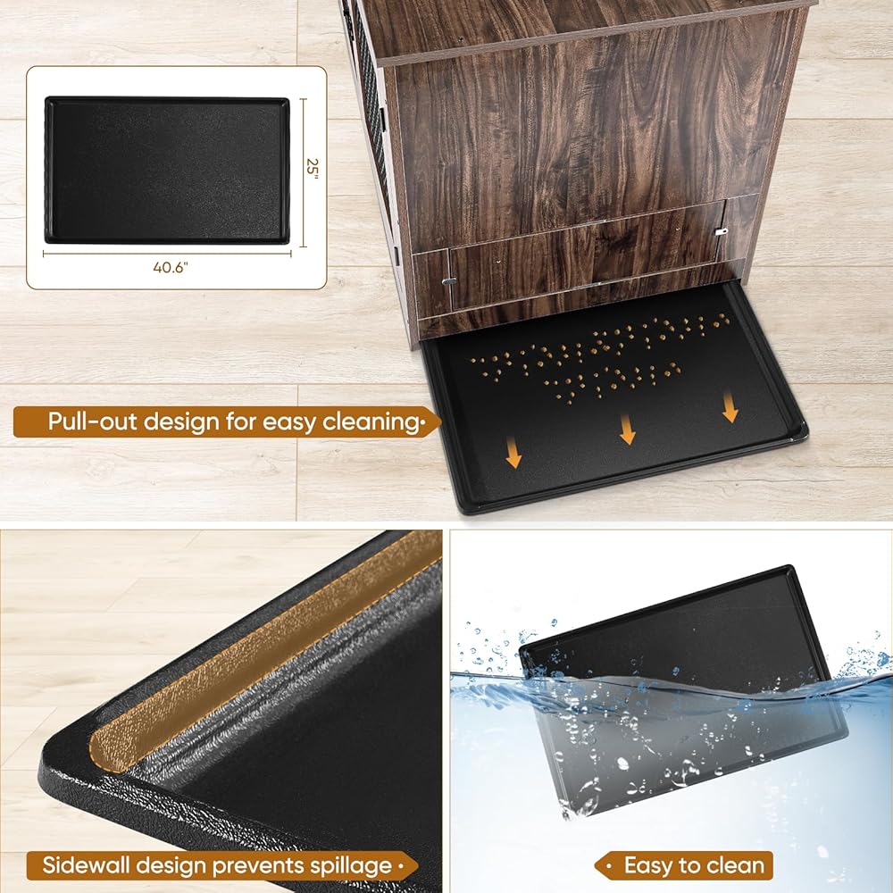 【هيكل قوي وموثوق 】: يعتمد بيت الكلب هذا على شبكة أسلاك فولاذية ثقيلة وخشب مضغوط موثوق به مقاس 15 مم لضمان الحزم. يمكن للغطاء العلوي أن يتحمل 200 رطل من الوزن الثابت. تأتي مع صينية قابلة للإزالة تمنع الانسكابات وتسهل التنظيف، ووسادة ناعمة لمزيد من الراحة لحيوانك الأليف.