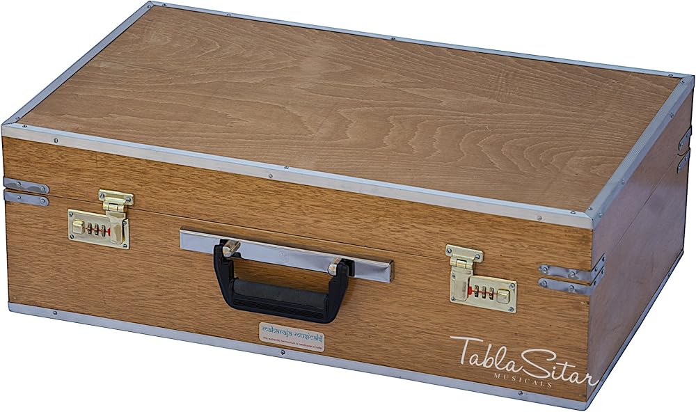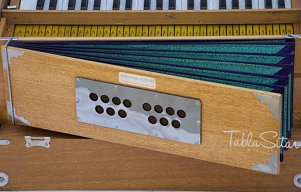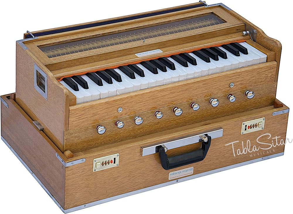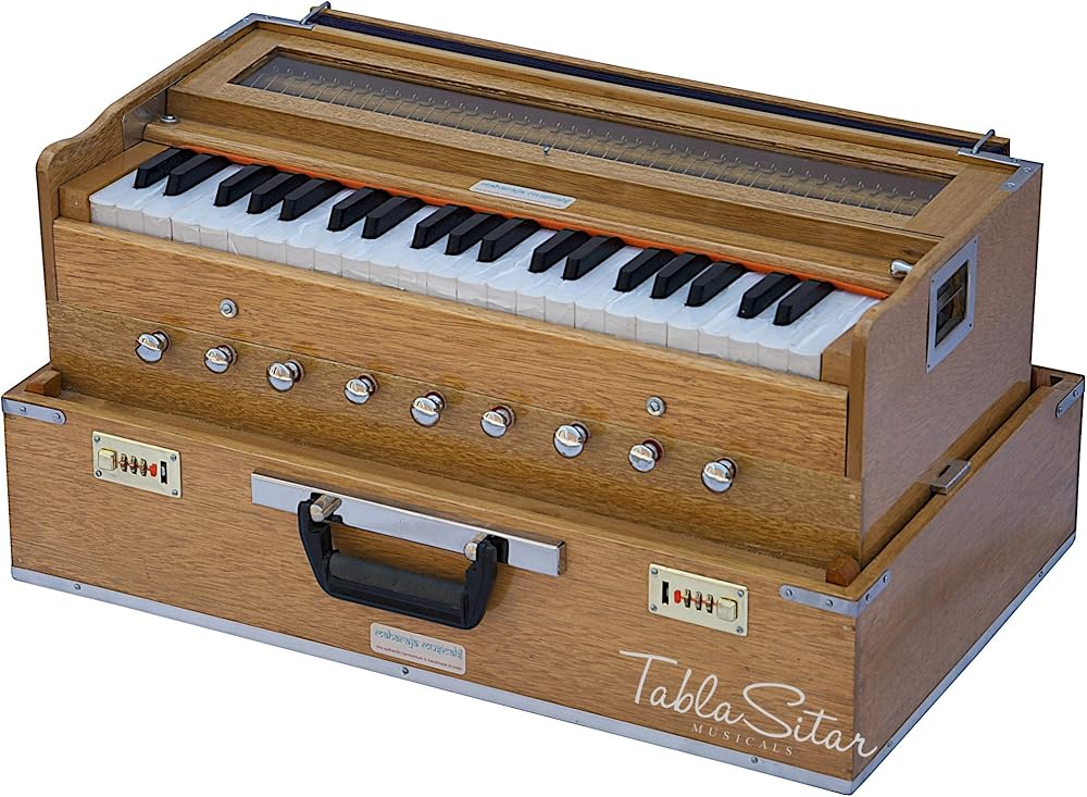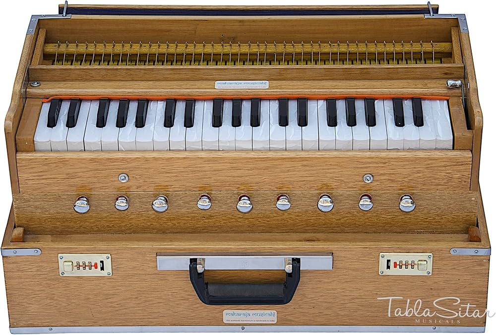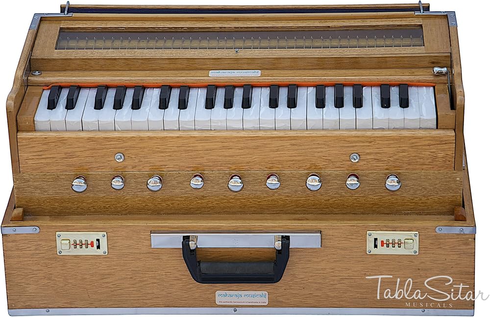 هارمونيوم من مهراجا ميوزيكالز، قابل للطي، 9 توقفات، في الولايات المتحدة الأمريكية، محمول، لون طبيعي، 3 1/2 أوكتاف، مضبوط على A440، قارنة توصيل، حقيبة، آلة موسيقية هندية (PDI-AHH)