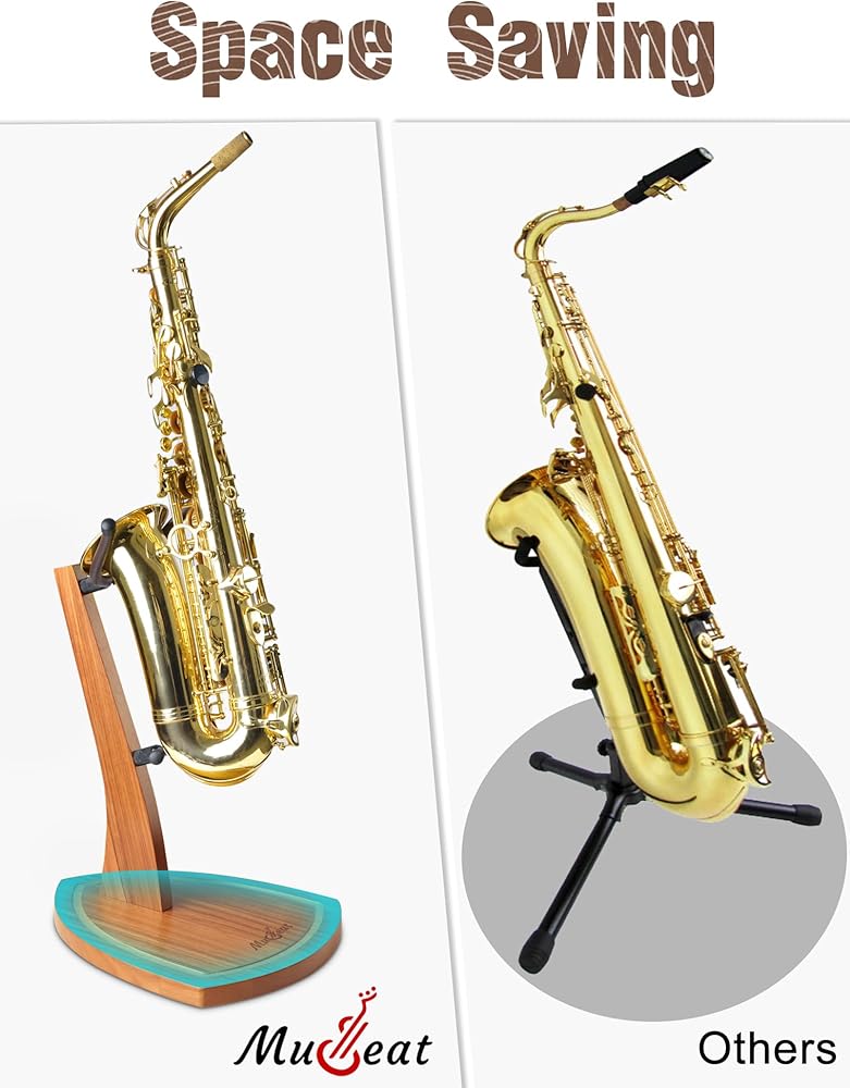 يناسب Tenor وAlto: يوفر حامل الساكسفون Musbeat المدمج مساحة واسعة لاستيعاب كل من الساكسفونات التينور وألتو. سواء كنت عازفًا منفردًا أو هاوًا أو مبتدئًا أو موسيقيًا شابًا، فإن هذا الحامل الأرضي الخشبي يوفر عرضًا رائعًا ومكانًا مريحًا للساكسفون الخاص بك، ويدعم اللاعبين من جميع الأعمار ومستويات المهارة.