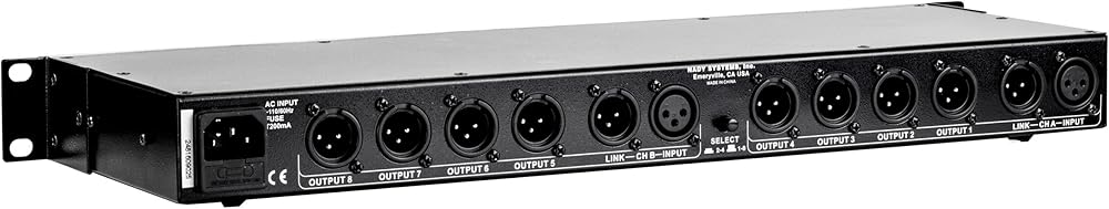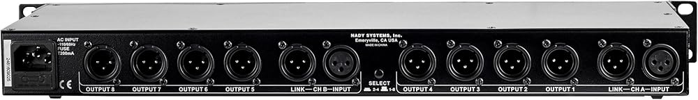 عناصر التحكم في الكسب الفردي (ما يصل إلى +6 ديسيبل) لجميع النواتج الثمانية؛ 2-4,1-8 وضع الانقسام حدد التبديل والعرض؛ مدخلات مزدوجة متوازنة (Ch. A/B) مع مخرجات وصلة للحصول على مرونة مثالية في توجيه الإشارة في التوصيل