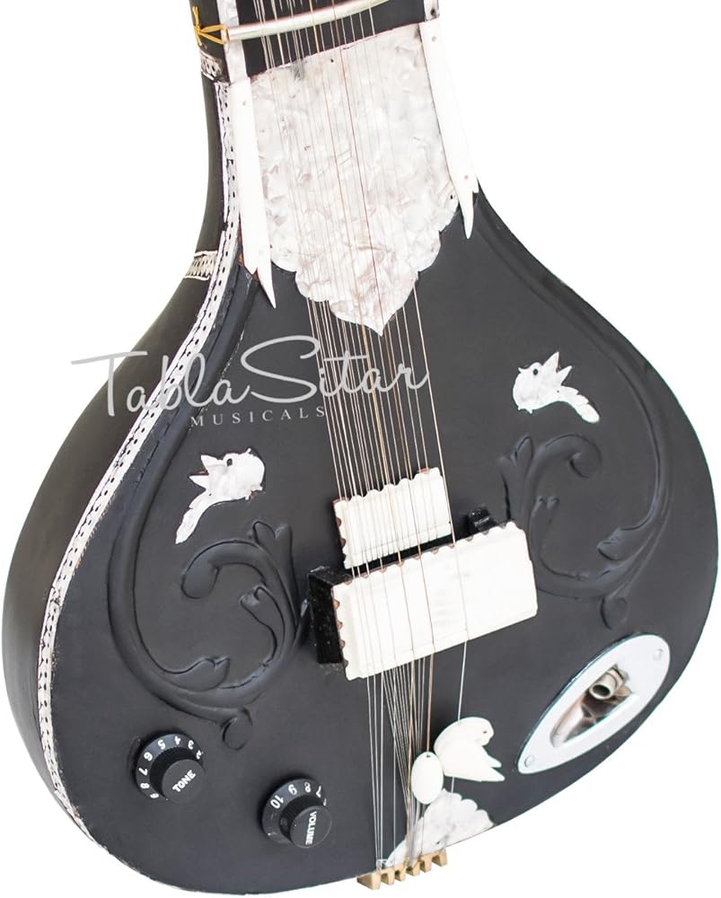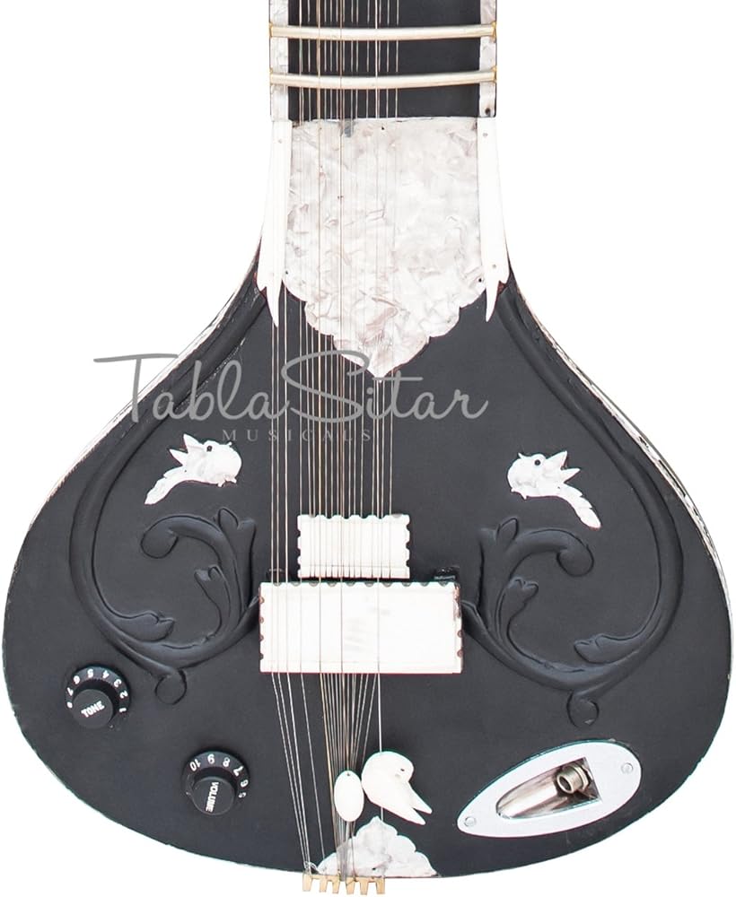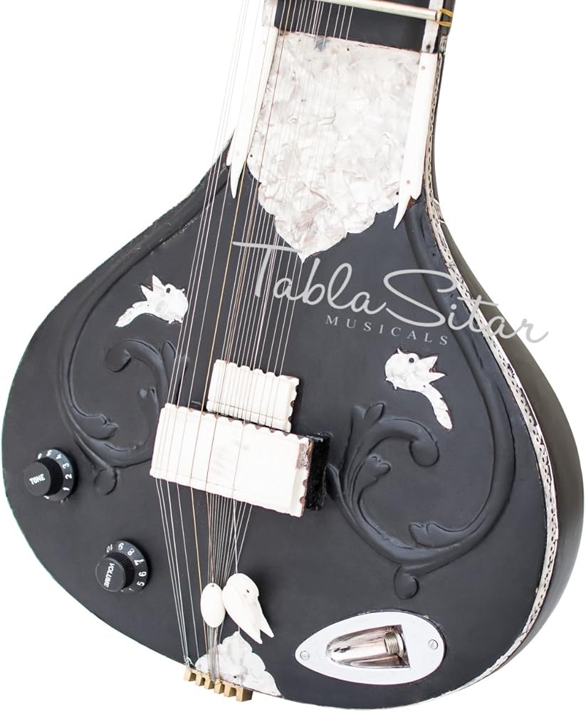 • سنجل تومبا سيتار - لون أسود - عمل السليلويد الرائع - جسور عظم الجمل