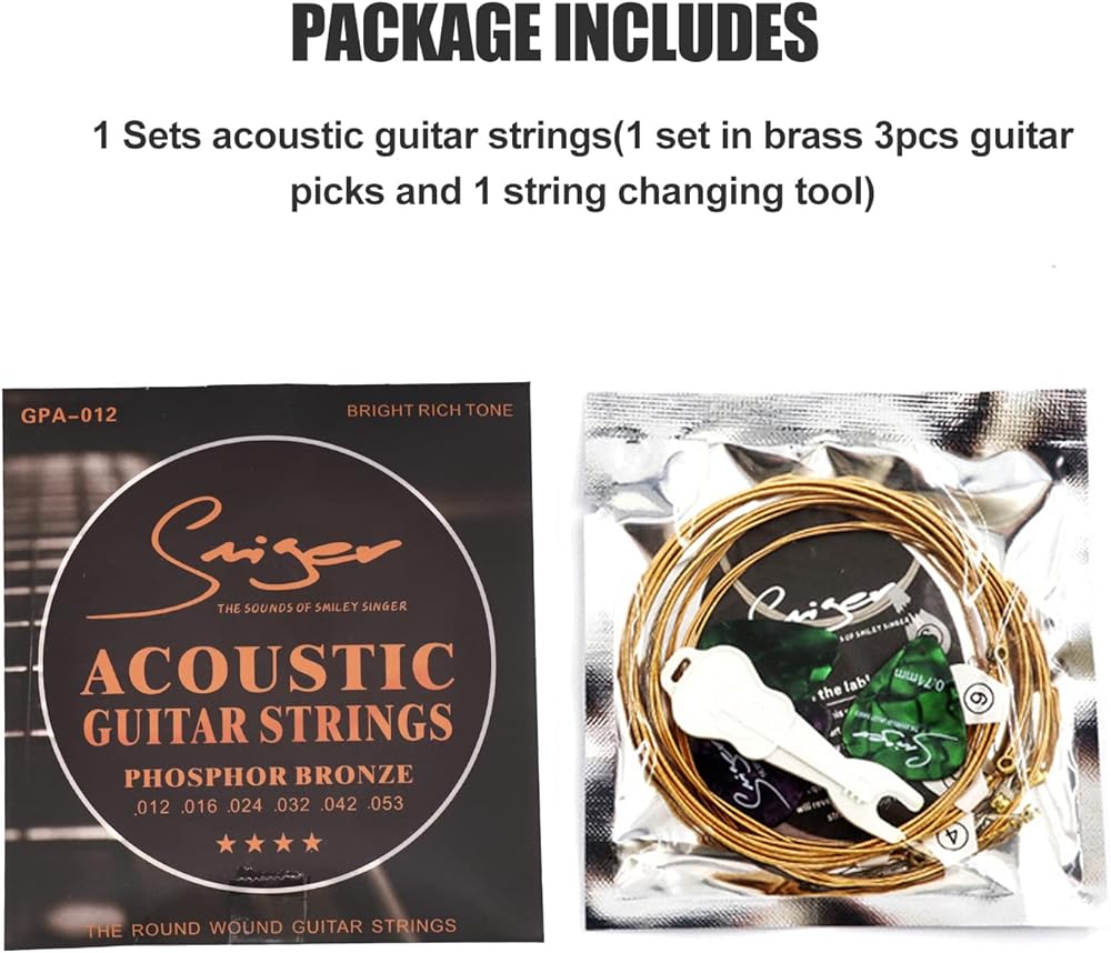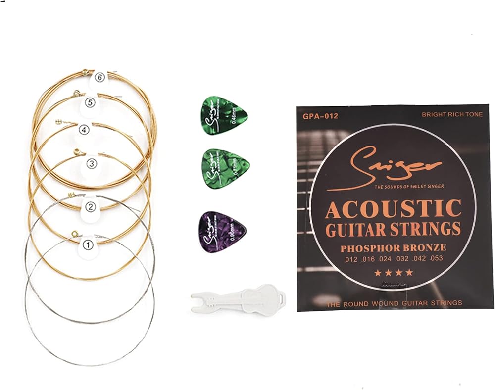 أوتار جيتار نحاسية أوتار جيتار صوتية.012-.053 أوتار جيتار صوتية مكونة من 6 أوتار و3 اختيارات جيتار وأداة تغيير سلسلة واحدة