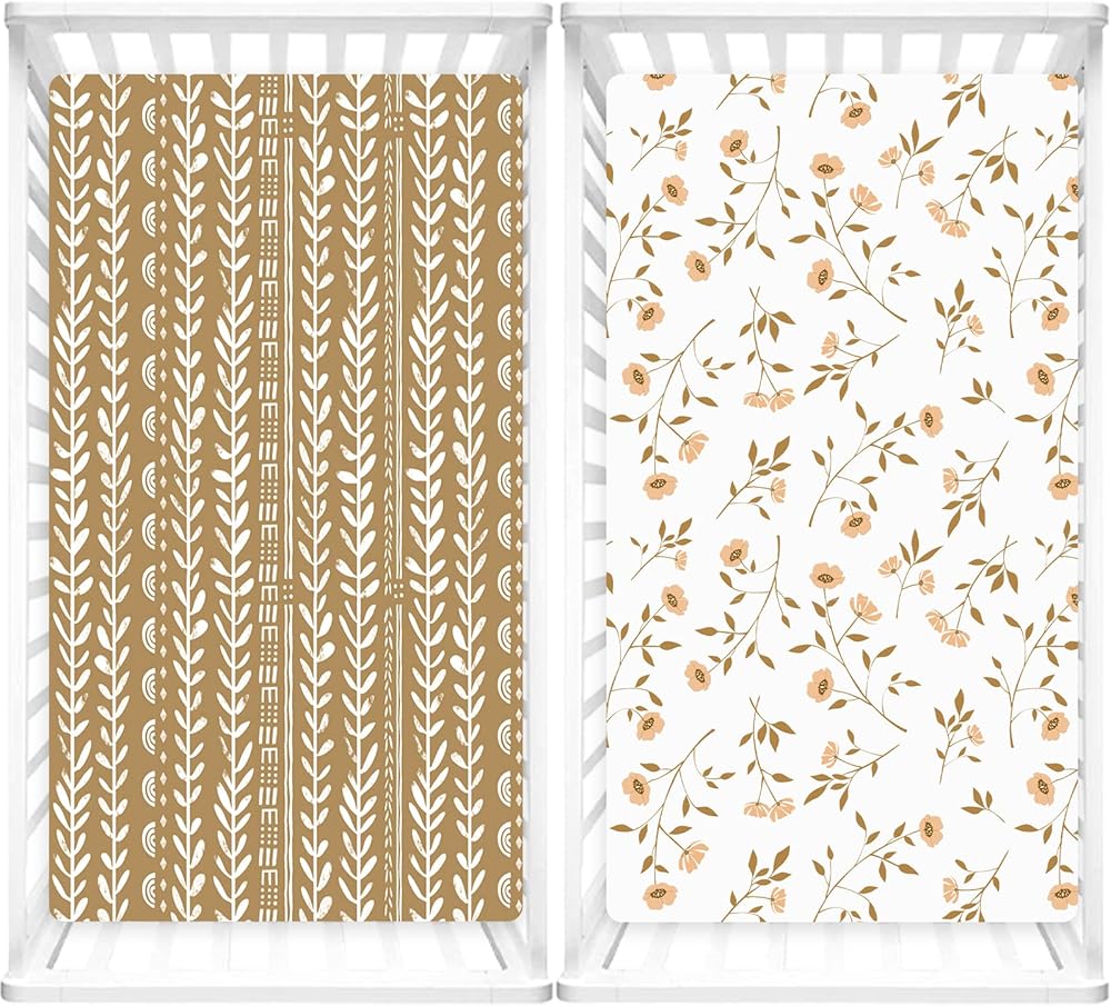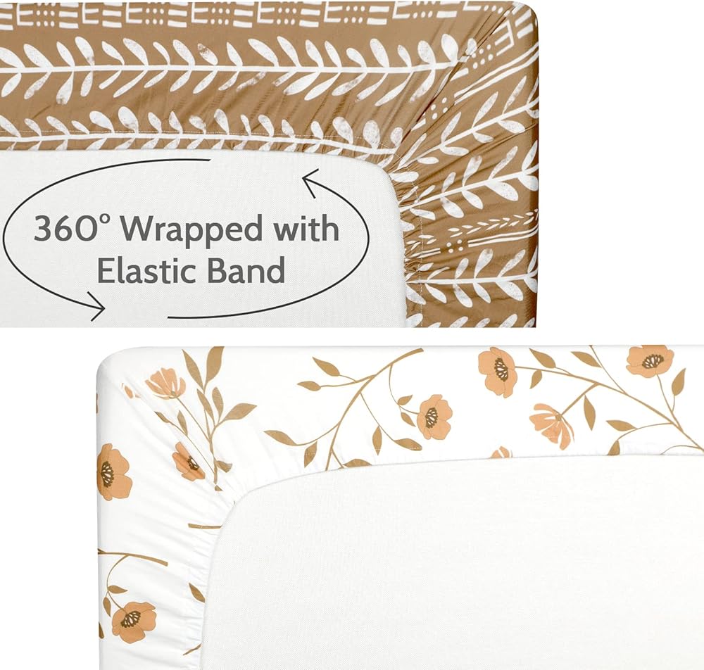 ملاءات سرير مناسبة للفتيات الصبيان، طقم من قطعتين من ملاءات سرير الأطفال المصنوعة من نسيج جيرسي الناعم المزين بالزهور لمراتب سرير الأطفال القياسية وفراش سرير الأطفال الصغار، زهرة بنية قديمة