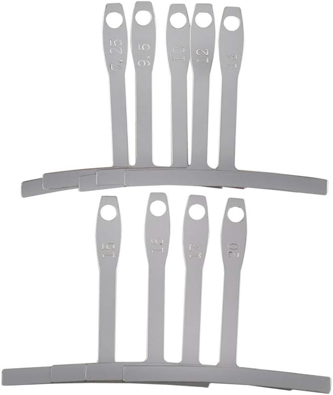 【مقاييس نصف القطر السفلية】مادة من الفولاذ المقاوم للصدأ، مجموعة من 9 قطع تشمل: 7.25 بوصة، 9.5 بوصة، 10 بوصة، 12 بوصة، 14 بوصة، 15 بوصة، 16 بوصة، 17 بوصة، 20 بوصة، نصف قطر، لا غنى عنه للحفاظ على جيتار الجير و تعديل.