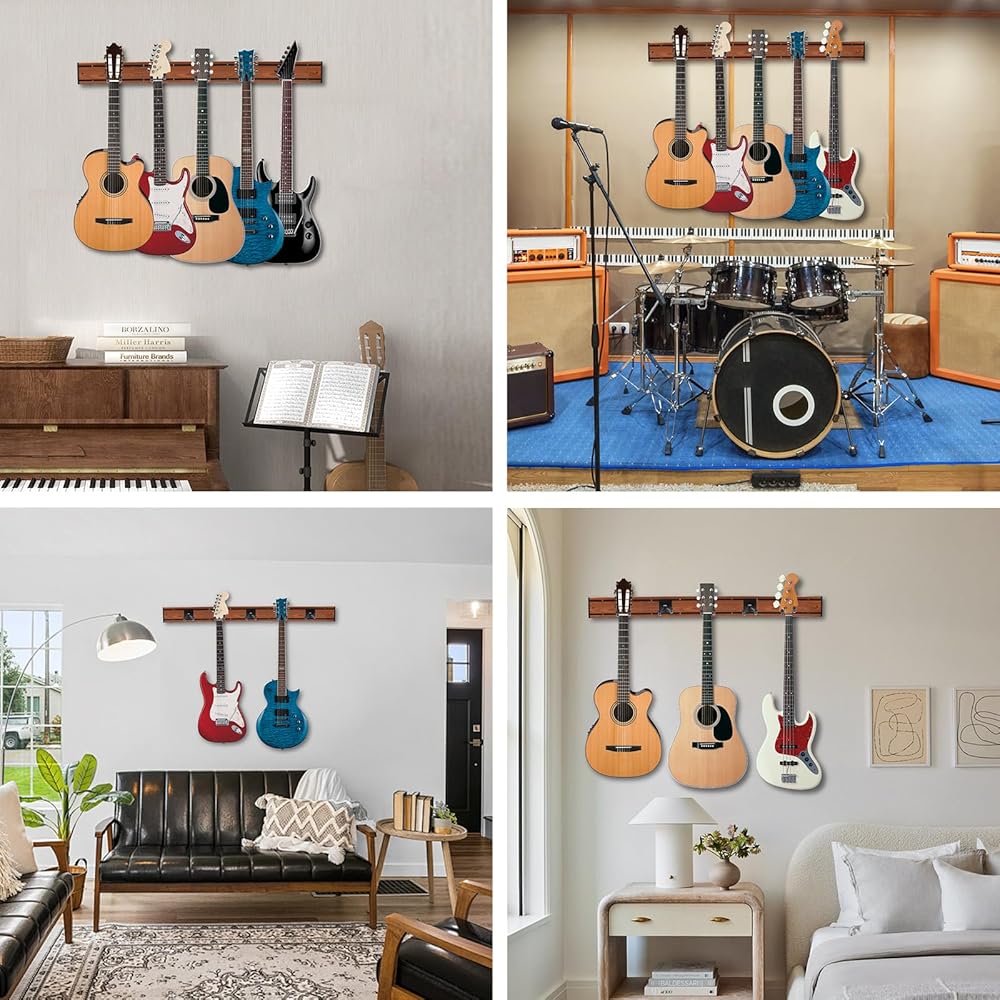 هدية مثالية لمحبي الجيتار: تصميم حامل الجيتار على الحائط بسيط وجمالي، بغض النظر عن مكان وضعه في المنزل أو المدارس أو استوديوهات الموسيقى أو غيرها من الأماكن الاحترافية ذات الصلة. يجب أن يمتلكه عشاق الموسيقى، إذا كنت لا تزال في حيرة من أمرك في اختيار الهدايا لزوجك أو زوجتك أو عائلتك أو أصدقائك، فإن هذه الشماعة الجدارية المدروسة متعددة الجيتار ستكون خيارًا رائعًا لهم في عيد الميلاد، وعيد رأس السنة، وعيد الحب، عيد الشكر وعيد الميلاد وغيرها من المهرجانات.