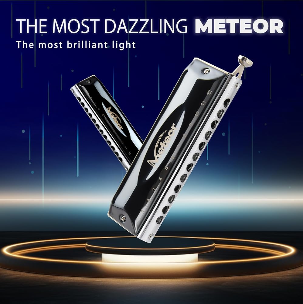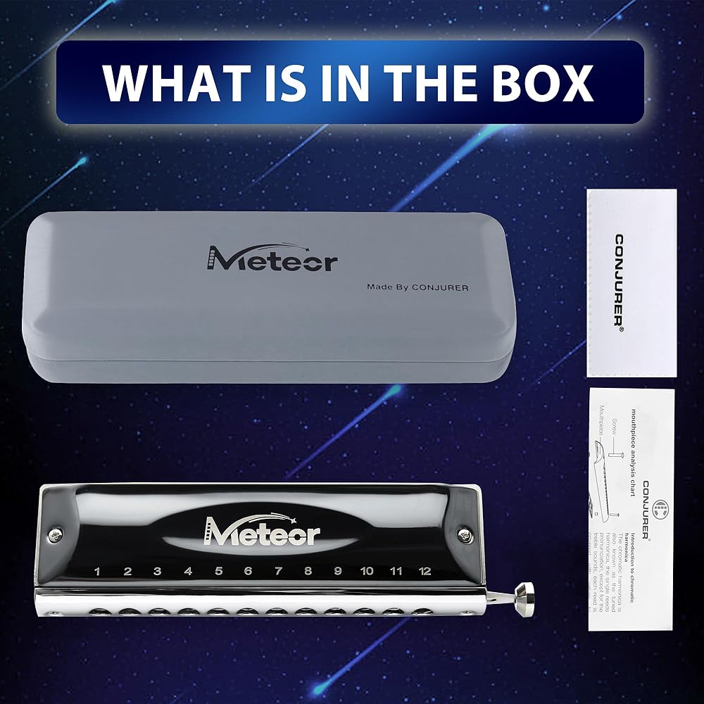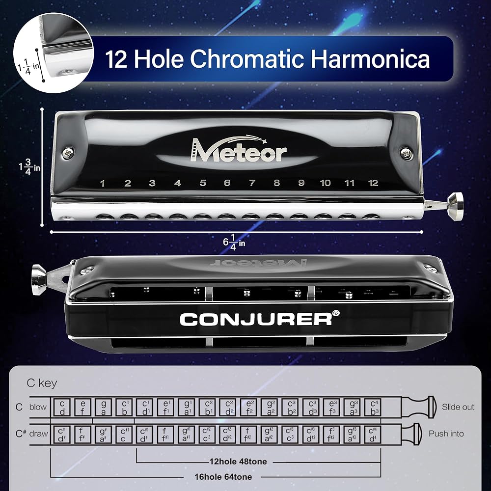 Conjurer Chromatic Harmonica C Major (الموديل: 1248-Aurora)، 12 فتحة 48 درجة، مع شريط تمرير لتغيير اللون، يوفر نطاقًا صوتيًا أوسع. هارمونيكا لونية مناسبة للمبتدئين والمتقدمين والكبار والأطفال.