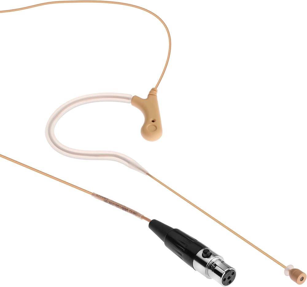 The Beige UEM-155-TA4F-BE Omnidirectional Earset Microphone with TA4F Connector for Shure Transmitters from Senal is a low-profile, lightweight, and miniature hands-free microphone with a flexible boom arm that can be worn on either ear. It can be used to deliver rich, accurate, and natural-sounding audio in vocal and speech applications for theater performances, lectures, houses of worship, and more.