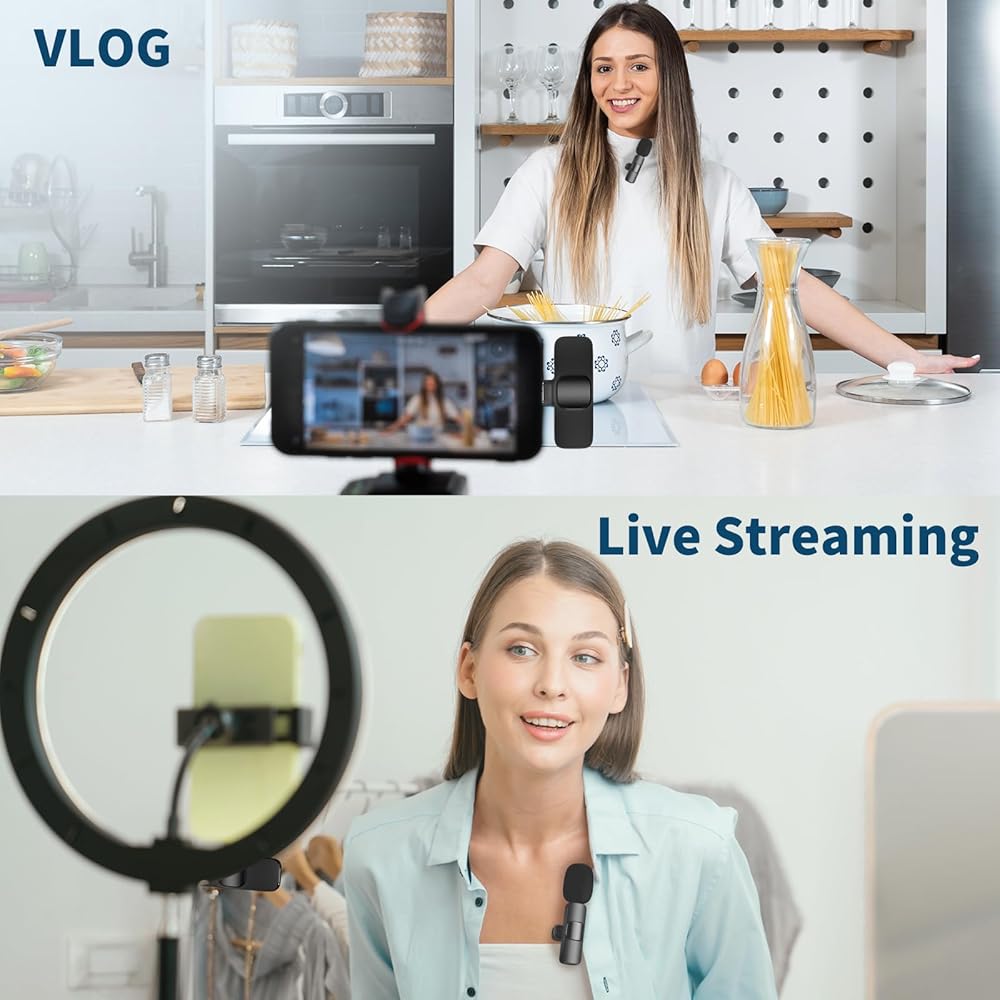 Versatility is key. Compatible with iPhone 15/Pro/Max and Android devices, aLLreLi's upgraded dual wireless lavalier microphones are perfect for interviews, online conferences, podcasting, vlogging, and live streaming.