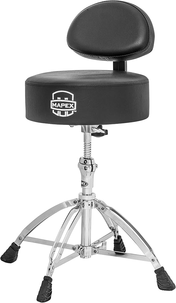 With its 14” x 4” round cushioned top and adjustable back rest, the T770 throne is the ultimate in support and comfort. The steel spindle height adjustment with memory lock and the addition of a 4th double-braced leg make this throne both user-friendly and extremely stable, providing a solid foundation from which to lay down some big beats.