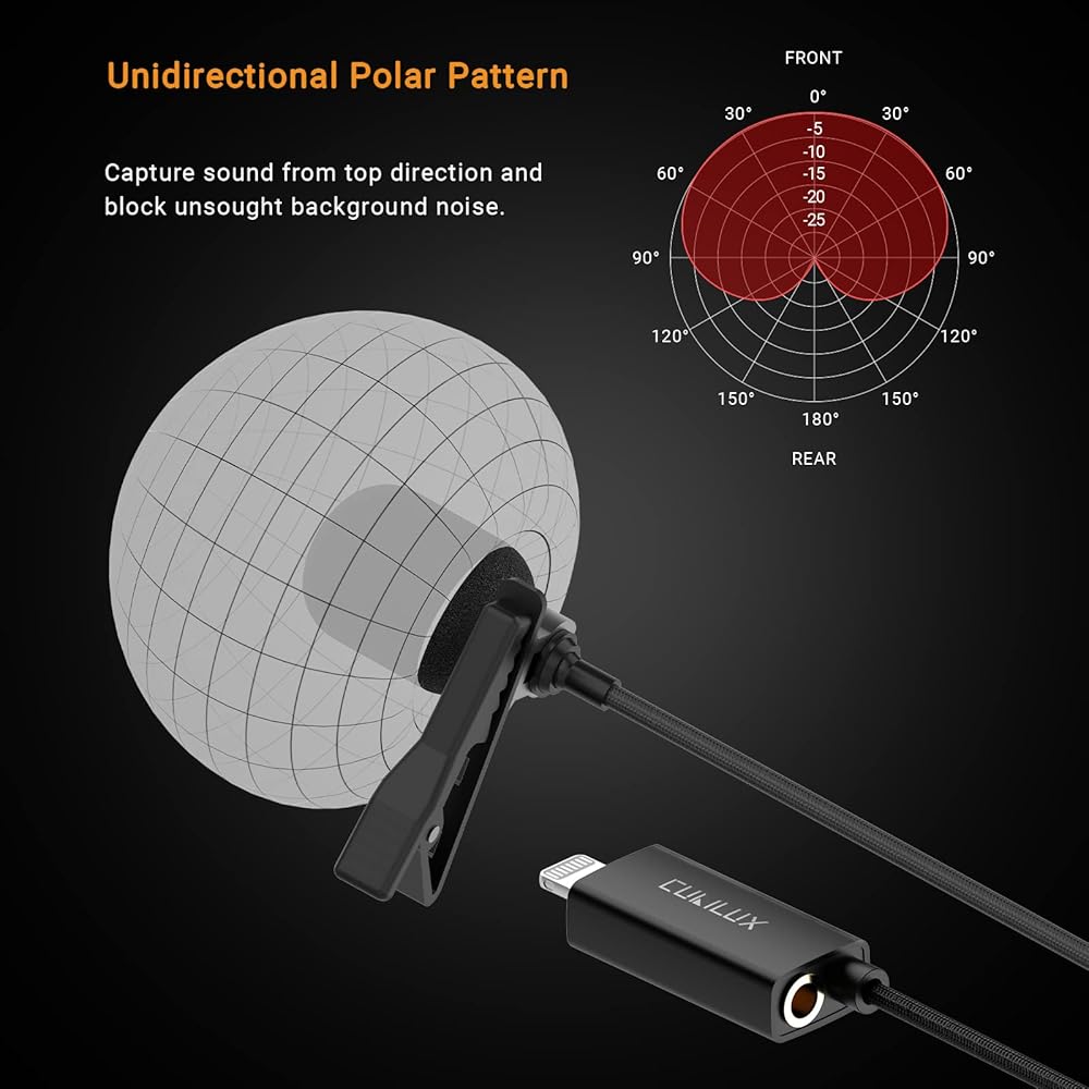 [نمط التقاط أحادي الاتجاه لعزل الضوضاء] - يلتقط ميكروفون Cubilux أحادي الاتجاه (قلبي الشكل) من النوع C الصوت من الاتجاه العلوي ويحجب الضوضاء المحيطة لتوفير محتوى صوتي نظيف مع صوت أكثر جودة.