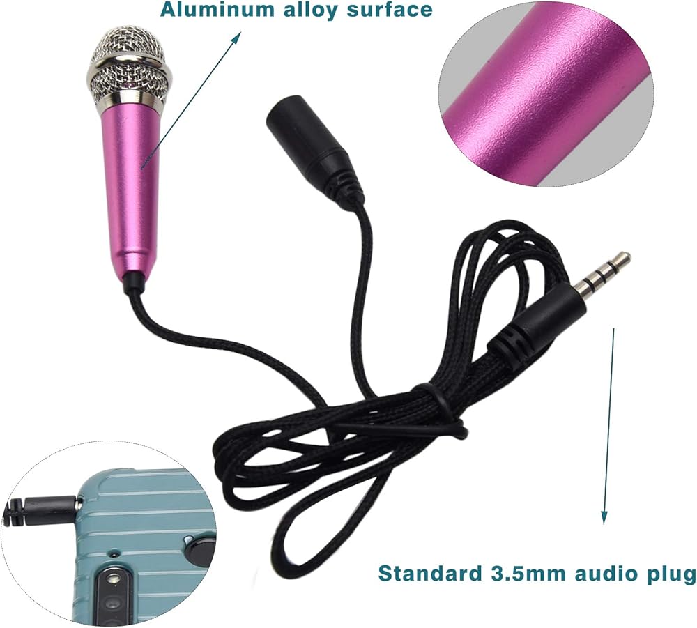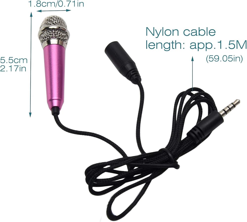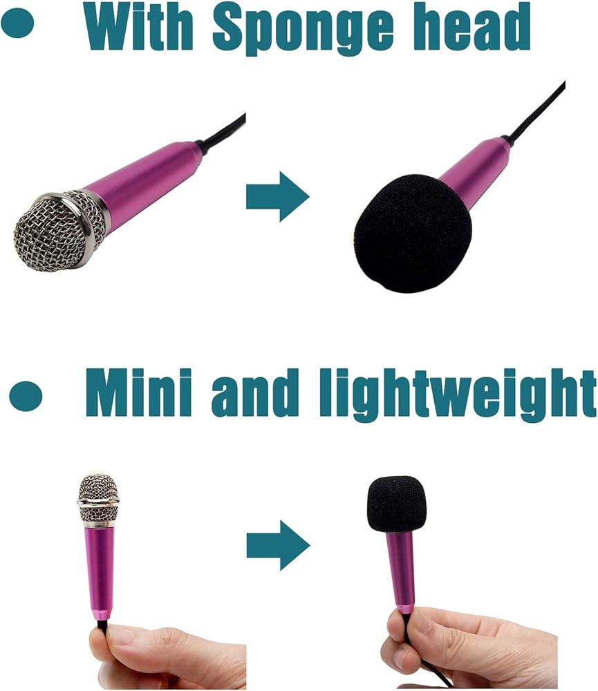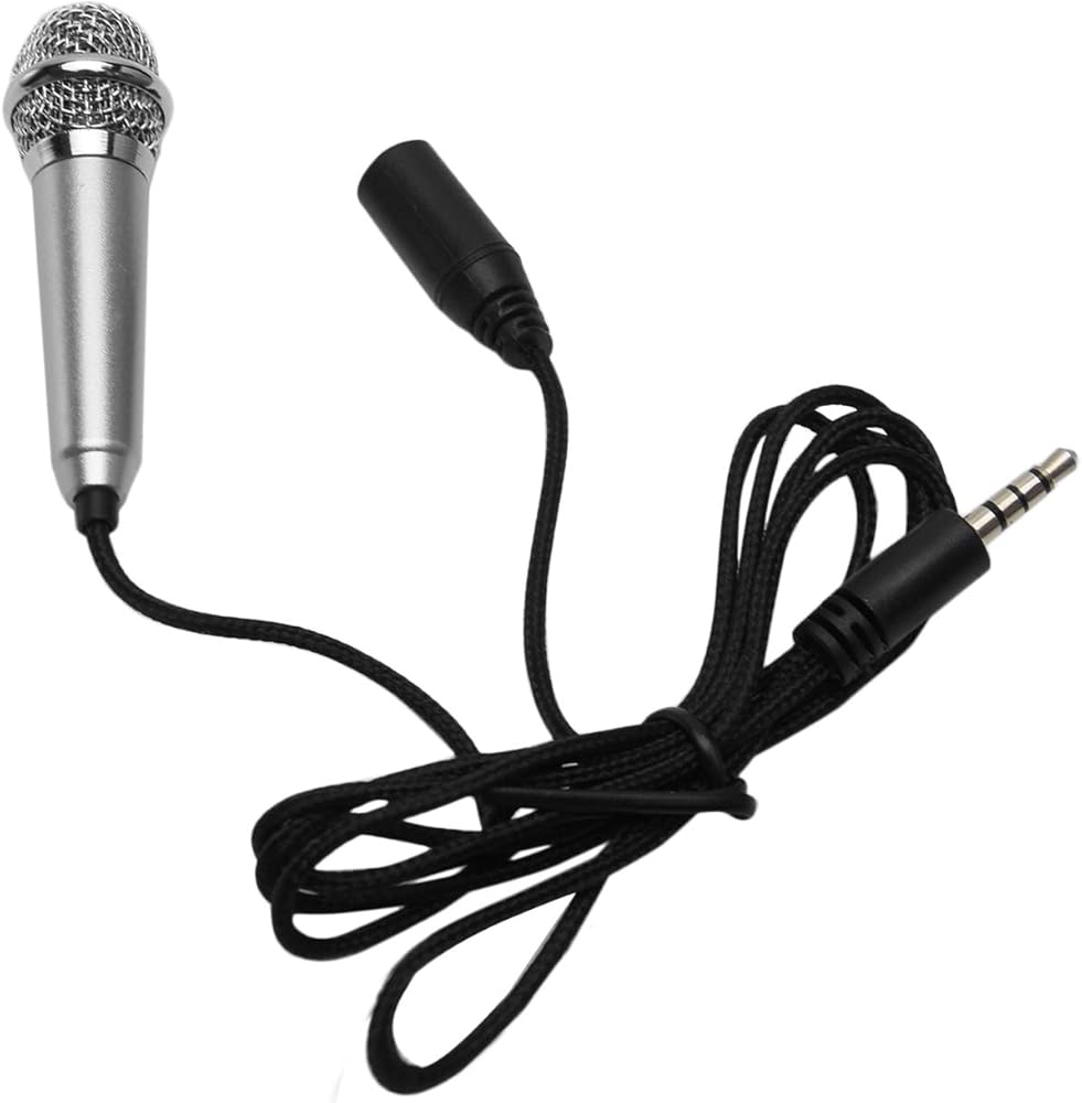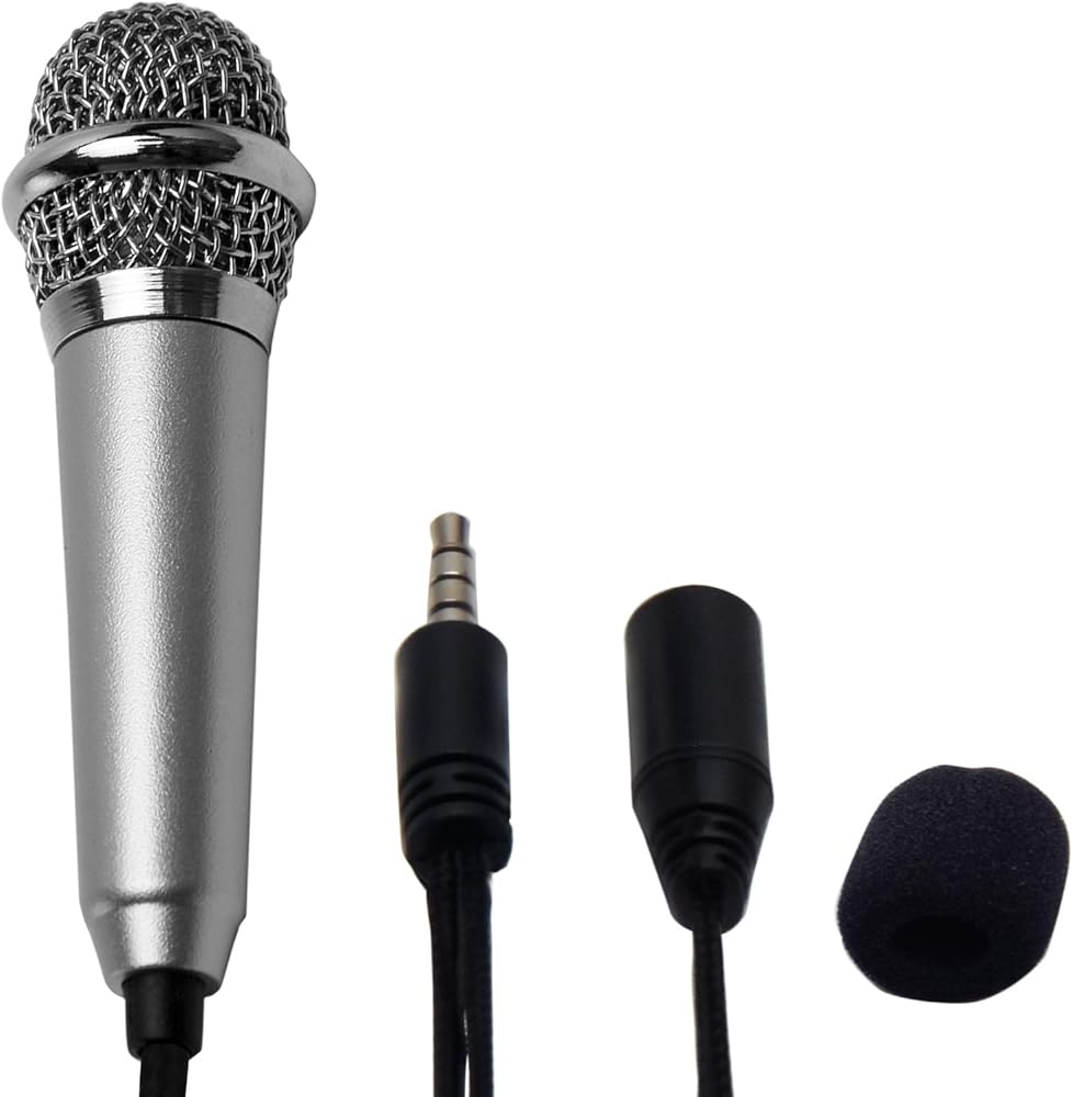 ميكروفون صغير EKDJKK، ميكروفون صوتي صغير محمول للتسجيل الصوتي، قابس 3.5 ملم ميكروفون صغير للغناء، ميكروفون كاريوكي صغير للهاتف المحمول والكمبيوتر المحمول والكمبيوتر المحمول (فضي)