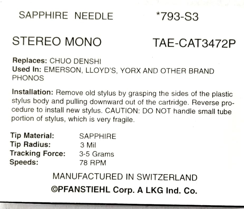 - Pfanstiehl replacement stylus - Pfanstiehl has been in the needle business for over 90 years