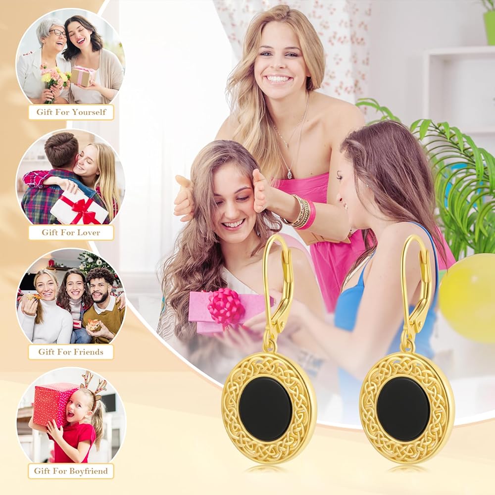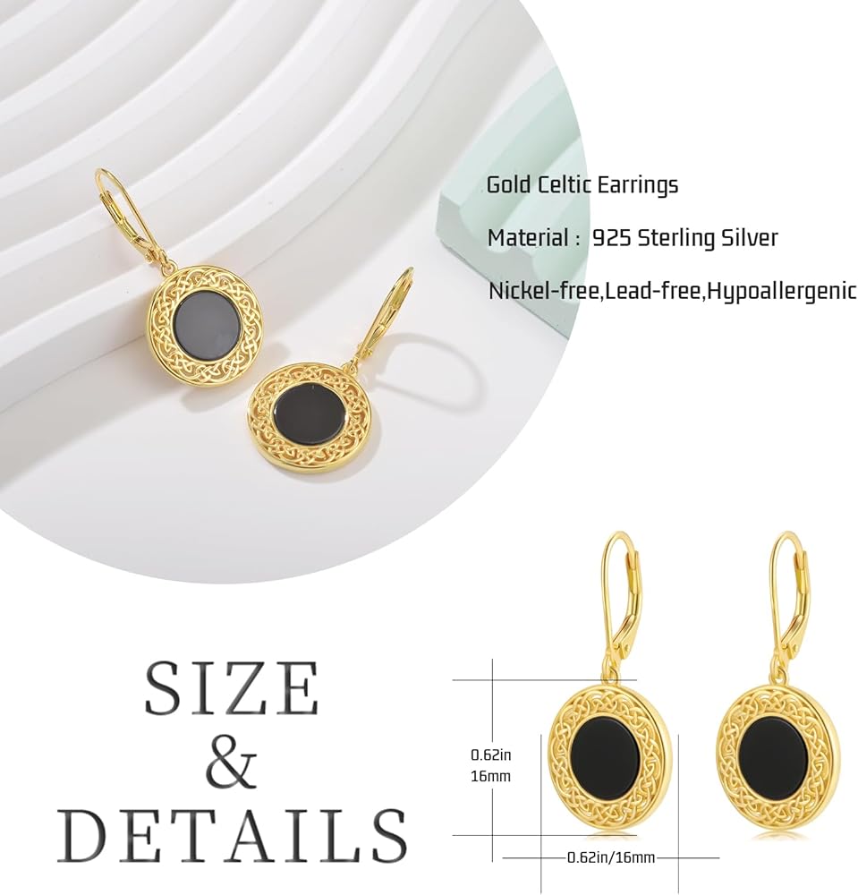 تصميم فريد: تتميز هذه الأقراط المتدلية السلتية بتصميم دائري مع العقيق الأسود في المنتصف. ريترو وأنيق، ولكنه عصري. إنها مجوهرات عصرية يجب اقتناؤها للنساء