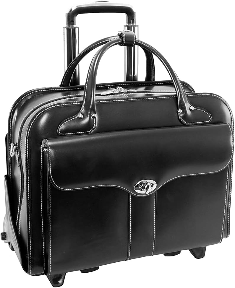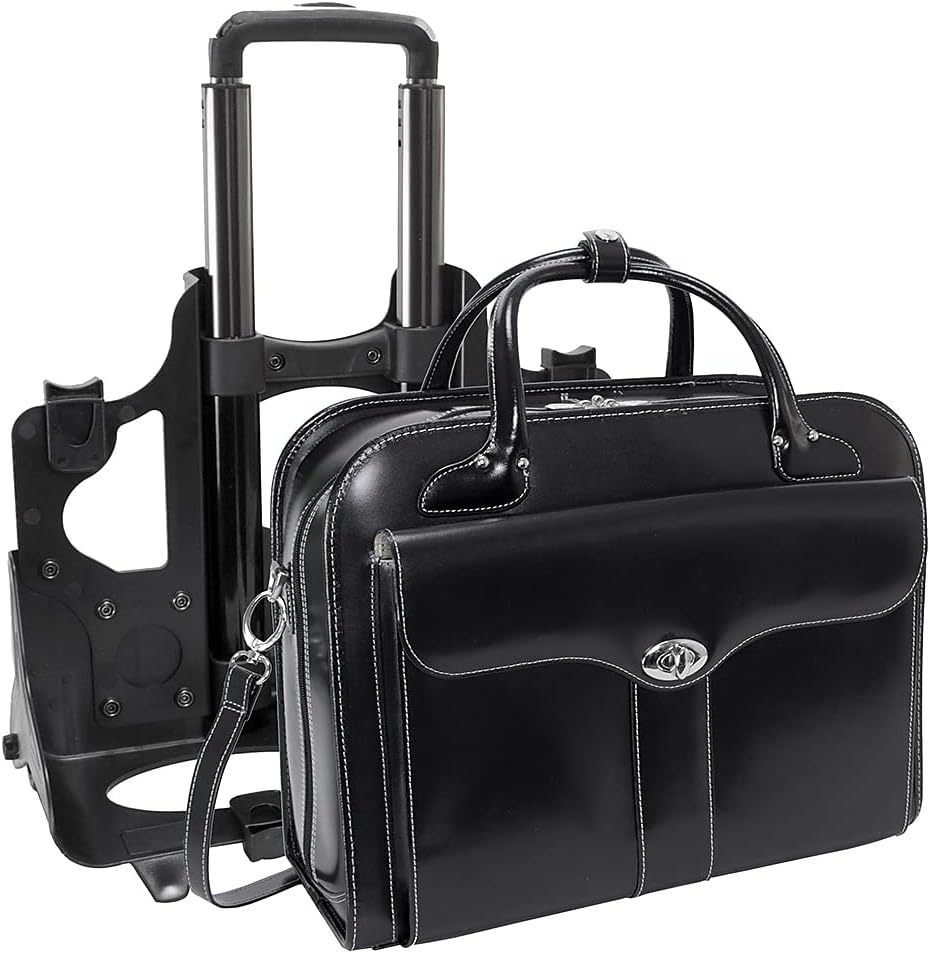 15" Leather Detachable -Wheeled Ladies' Laptop/ Computer & Tablet Business Briefcase Bag/ Women's Rolling Overnight Travel Bag, Removable trolley case
