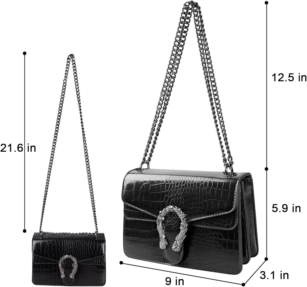 💎[سعة كبيرة]: حقيبة حقيبة مطبوعة على شكل ثعبان مقاس (طول 9 بوصة × عرض 3.1 بوصة × ارتفاع 5.5 بوصة)، ارتفاع السلسلة: فردية 21.6 بوصة، مزدوجة 12.5 بوصة، فتحة مغناطيسية من الداخل مع حجرتين كبيرتين وجيب بسحاب. محفظة بسلسلة مطبوعة على شكل ثعبان هي سعة كافية لمستلزماتك الأساسية التي يمكنك حملها، مثل الهاتف الخلوي والمحفظة ومستحضرات التجميل وأحمر الشفاه وما إلى ذلك، سواء كنت ستذهب إلى العمل أو التسوق أو السفر، فهي تلبي احتياجاتك.