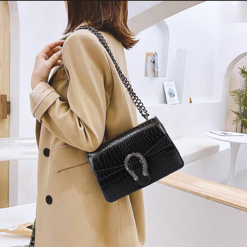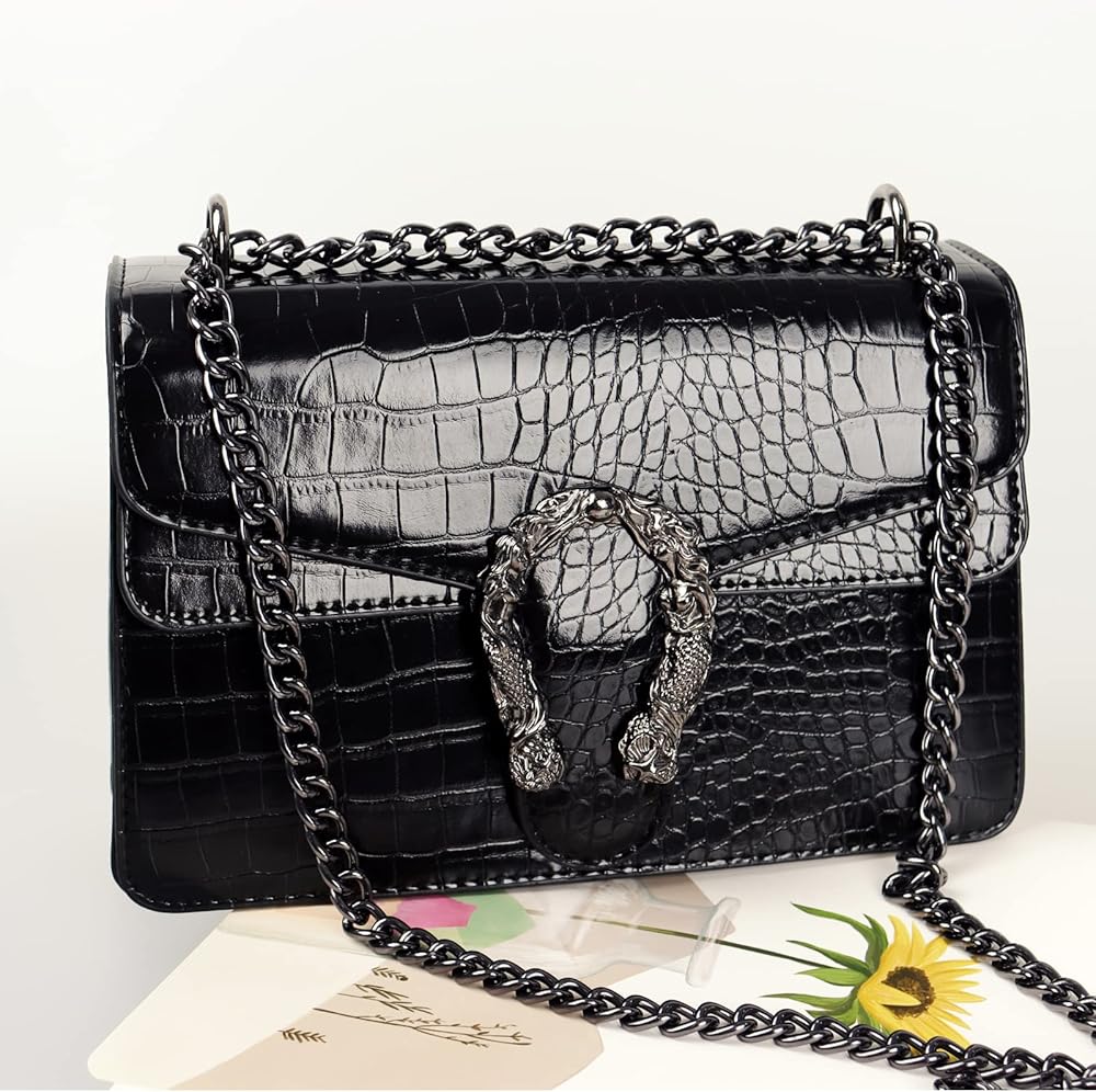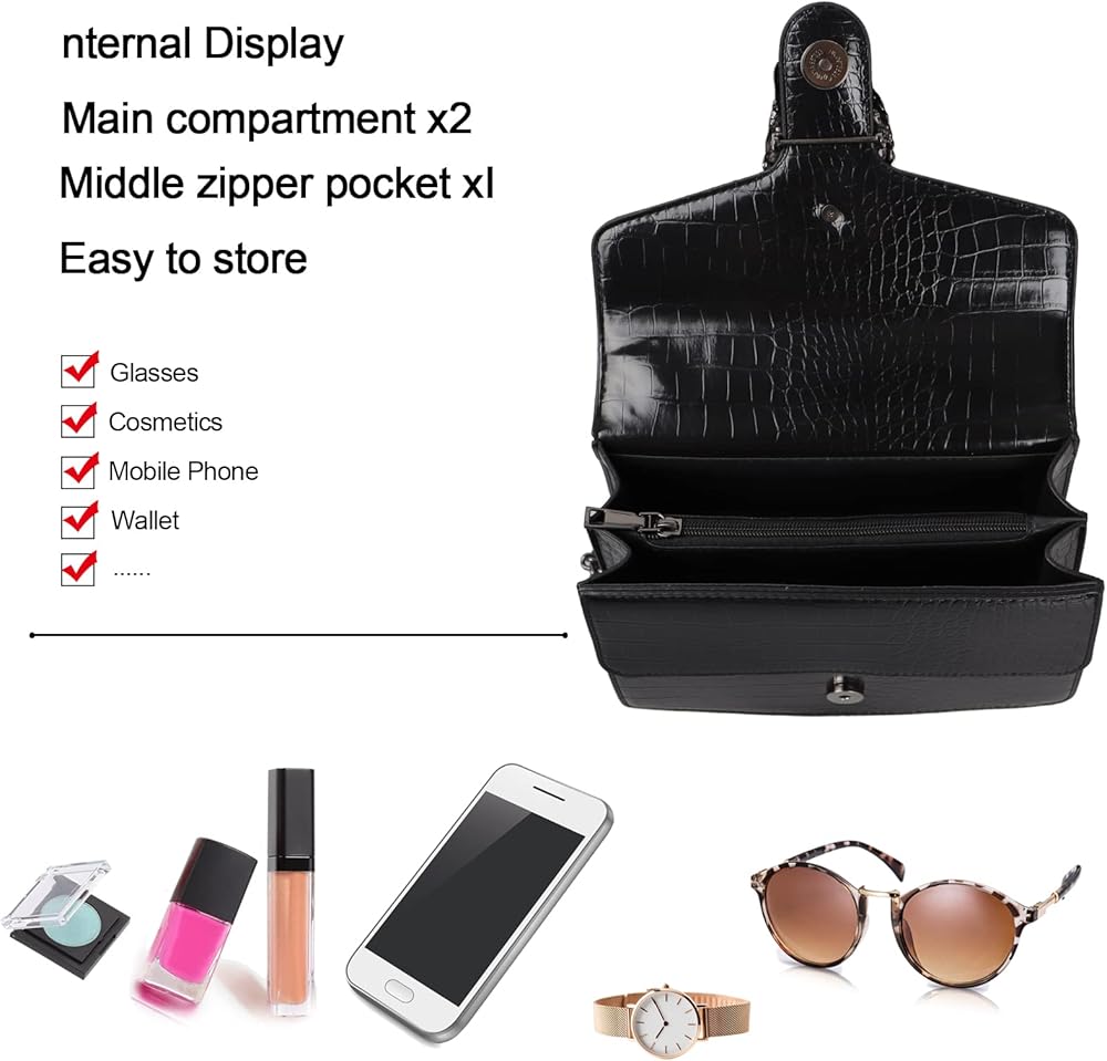 💎[تصميم عصري وفريد من نوعه]: تتميز حقيبة ستاتشيل العصرية النسائية بنمط التصميم المنقوش على شكل تمساح الأكثر شعبية، وخياطة جلدية دقيقة تجعل الحقيبة ثلاثية الأبعاد، ونبيلة وأنيقة، مع إبزيم معدني منقوش كلاسيكي مذهل، افعل كل شيء لإظهار ذوق سيدتك الأنيقة.