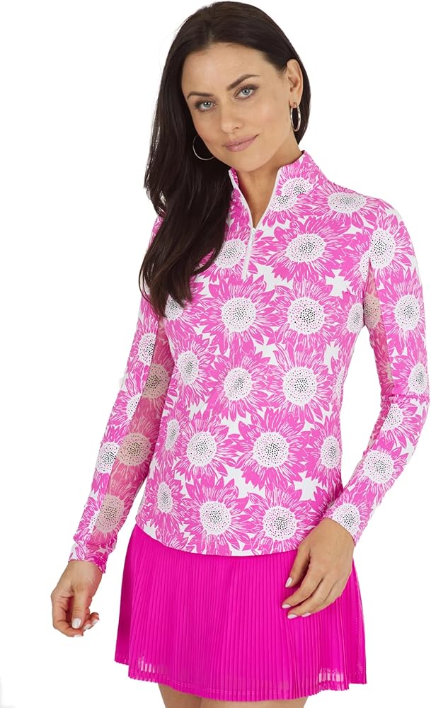 Color/Pattern: Ruthie Hot Pink/White Approximately 25In From Shoulder To Hem Model Is 5'10 And Is Wearing A Size Small. Measurements May Vary Slightly By Size. Design Details: Upf 50 Sun Protection, 2-Way Air Circulation, And Mesh Undersleeves 1/4-Zip Closure Self: 92% Nylon, 8% Polyurethane Mesh: 80% Nylon, 20% Polyurethane Machine Wash Imported