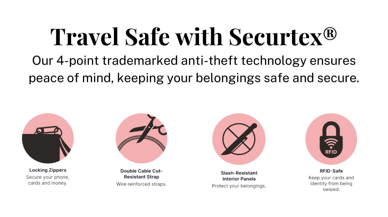 More sightseeing, less worrying. Protect your possessions and peace of mind with easy-access pockets, anti-theft hardware, and a slash-resistant sling strap.