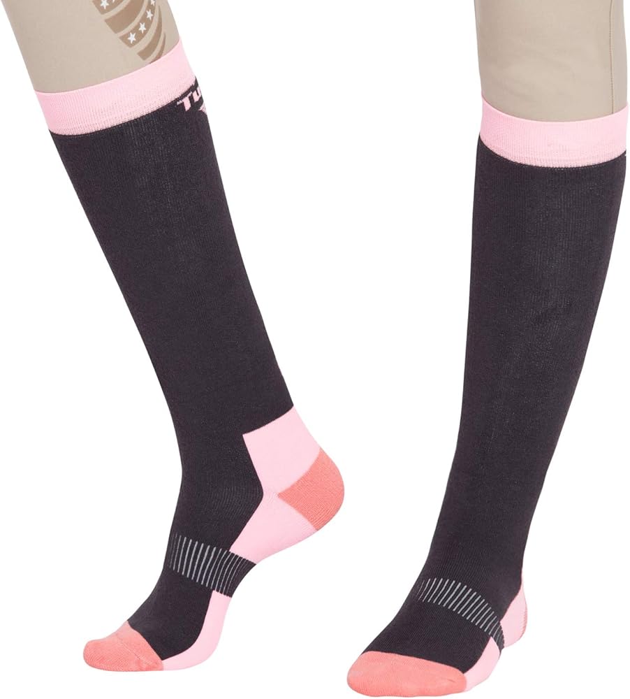 Perfect for colder weather, the TuffRider Ladies Neon Winter Thermal Knee Hi Socks - 3 Pack will be the go-to socks for all riders. Designed to keep the chill out, these socks are insulated for comfort. The Neon Winter Thermal socks are also super soft, with a fabric blend of cotton, nylon, and spandex.