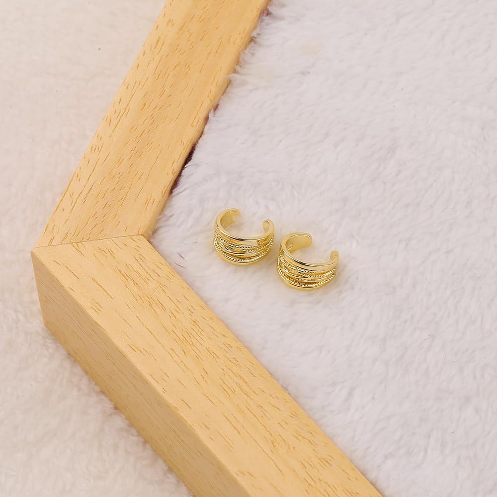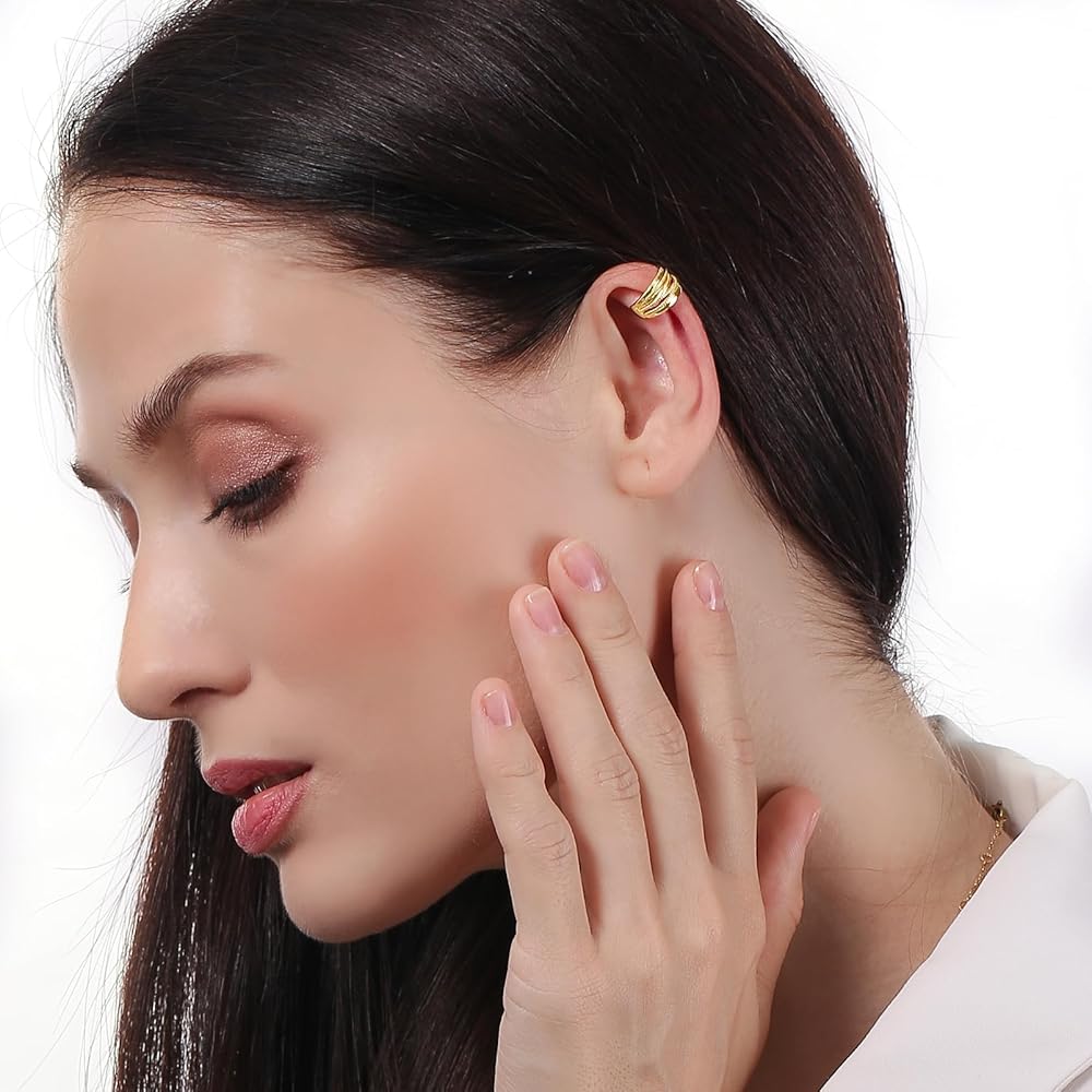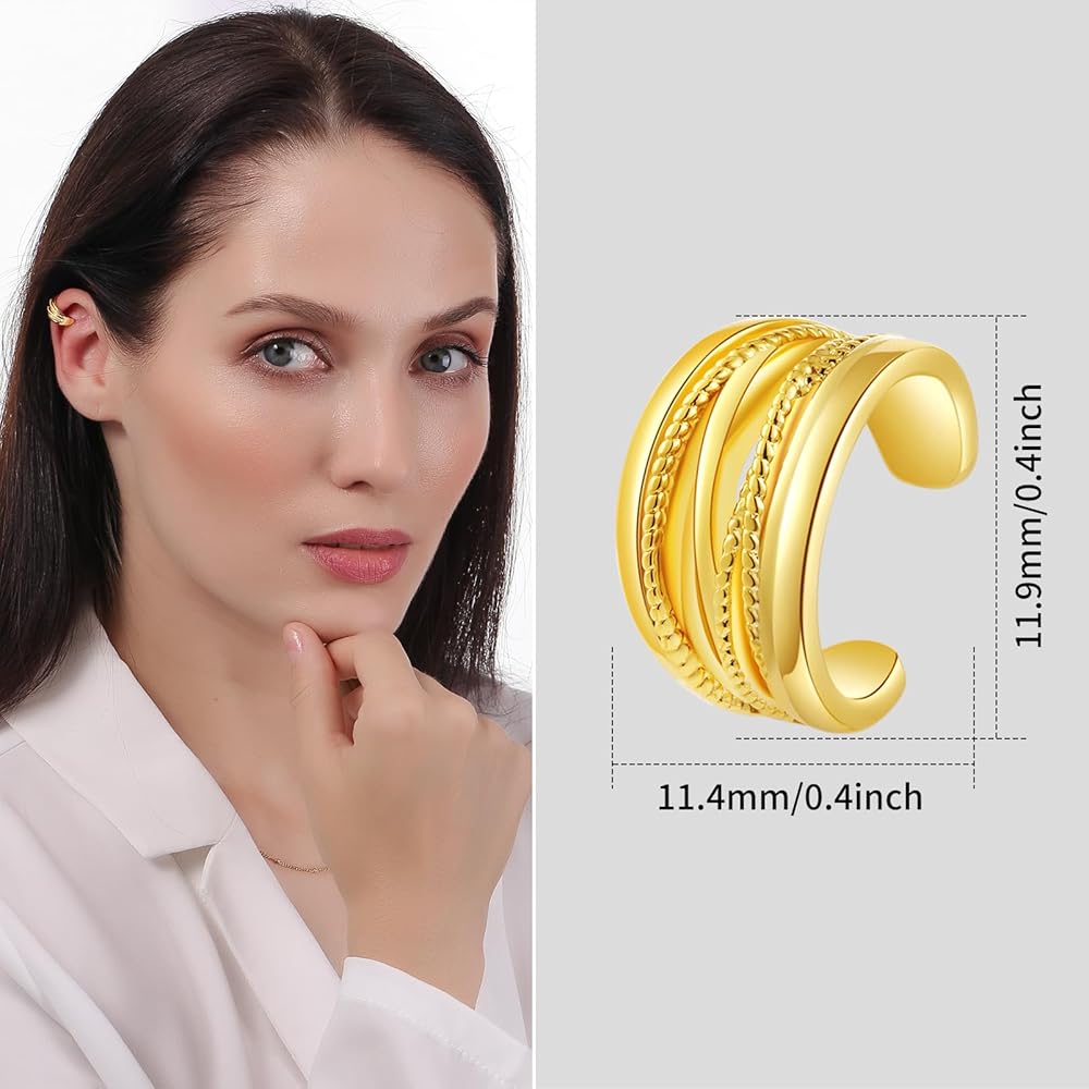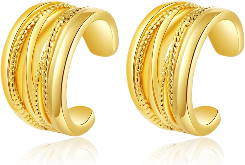 14K Gold Quality:gold cuff earrings 14K real gold plating on the surface with 925 sterling silver pillars,lead-free and nickel-free,hypoallergenic,ensuring a durable wearing experience.These thick hoop earrings are exquisite and lightweight,comfortable to wear,easy to wear all day,enhance your daily fashion decoration color!