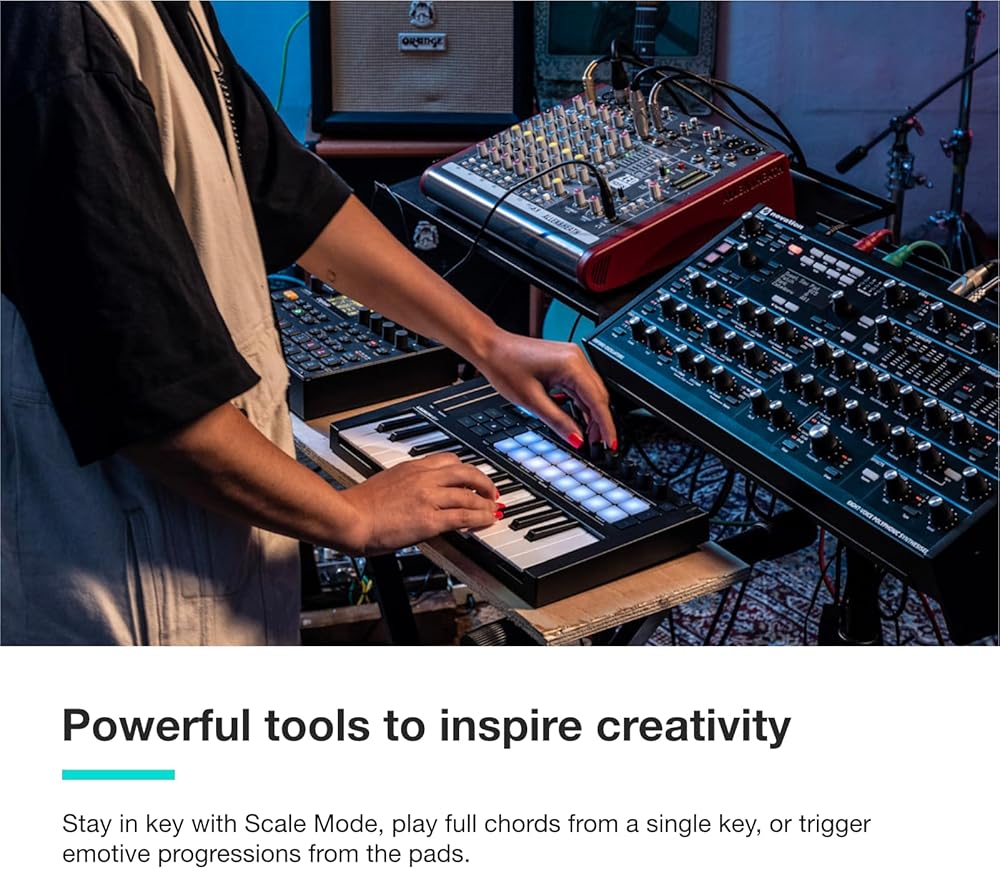 The Creative Controller: Launchkey is an all-in-one DAW controller with premium keybeds and 16 responsive FSR pads for drumming, clip launching, and more.