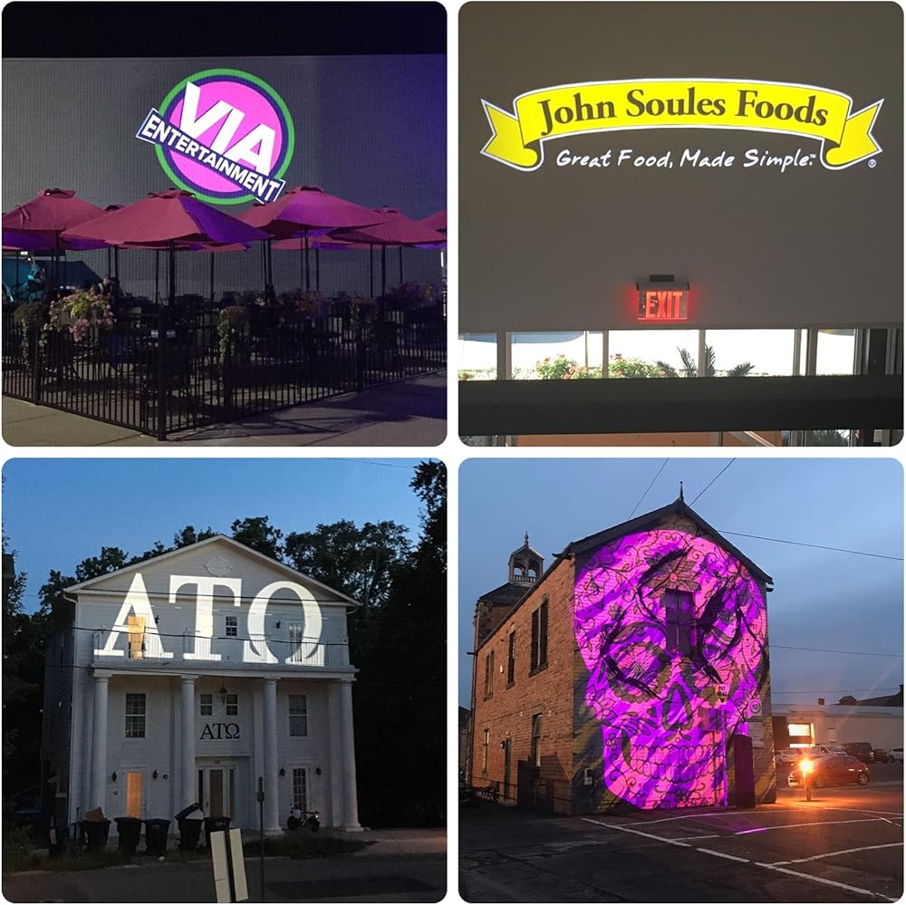 • [عرض الشعار المحسّن] نطاق العرض يصل إلى 130 قدمًا في المناطق المظلمة أو المعتمة. توفر 6 عدسات HD مع OSRAM LED شاشات شعار حادة وعالية الدقة بألوان نابضة بالحياة. يتفوق على لافتات النيون التقليدية من خلال عرض فائق السطوع والوضوح وشعار كبير جدًا.