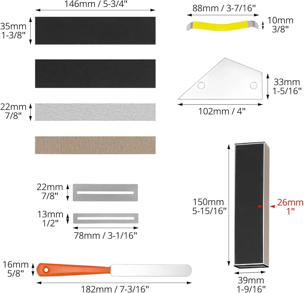 تخزين مريح: يتم تنظيم جميع الأدوات بدقة في حقيبة تخزين متينة ومحمولة، مما يجعلها مريحة للحمل والاحتفاظ بأدوات صيانة الجيتار الخاصة بك في مكان واحد.