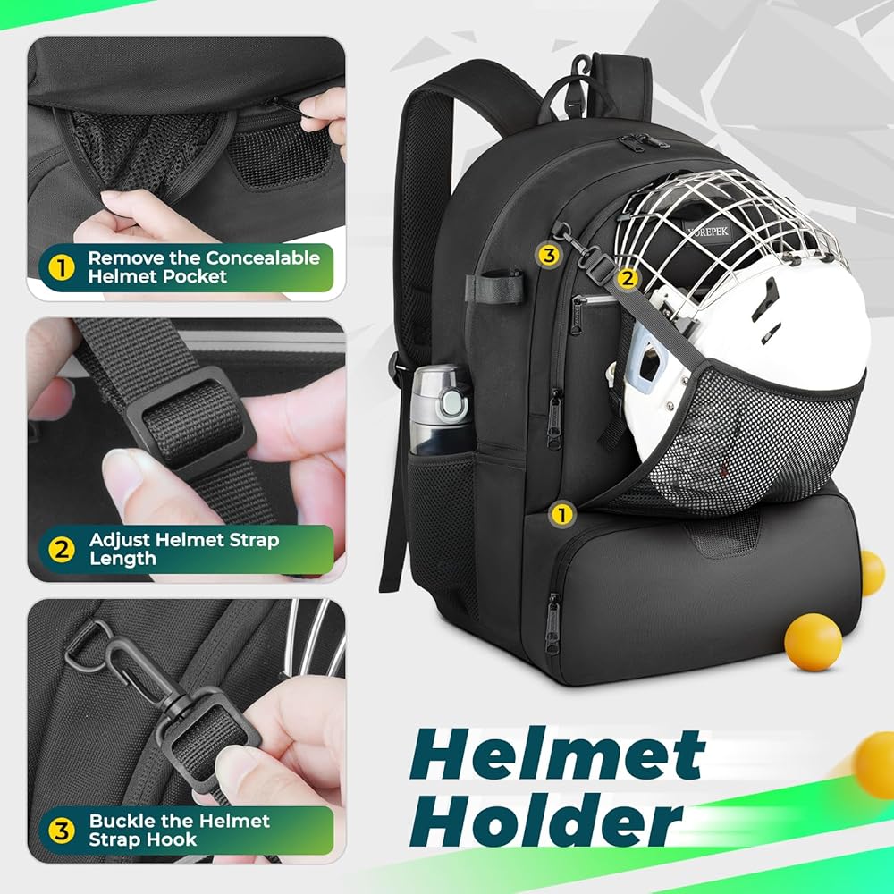 تصميم مريح مسامي: أحزمة حقيبة الظهر وظهر شبكي هوائي مبطن مع حزام للصدر قابل للتعديل، توفر لك العناية الدافئة وحزام الورك لتجربة سفر مريحة. خطاف السياج يجعل من السهل تعليق حقيبة الهوكي الخاصة بك على سياج الملعب، مما يتيح لك سهولة الوصول إلى حقيبة الهوكي الخاصة بك