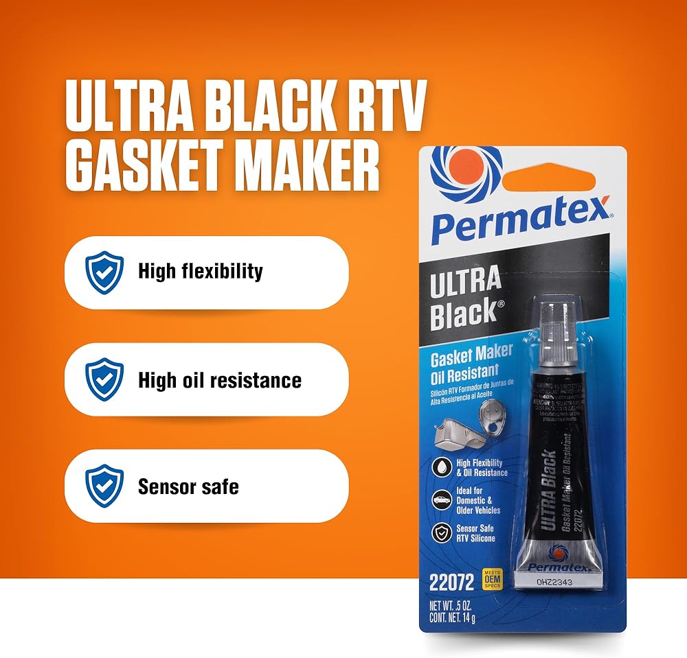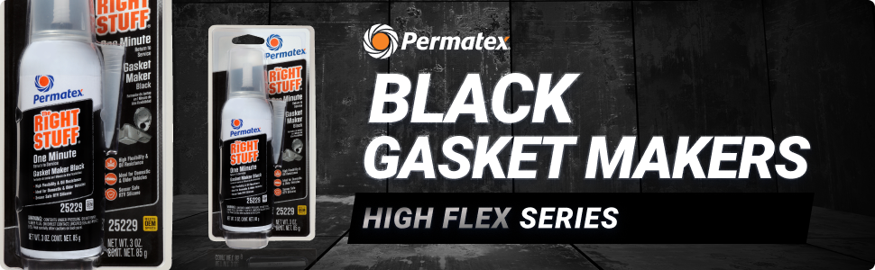 Make leak-proof gaskets and return equipment to service immediately with Permatex The Right Stuff 1 Minute Black RTV Gasket Maker! The Right Stuff is our most advanced gasket maker made for high flexible and high oil-resistant applications. It eliminates the need to wait for the gasket maker to cure - just reassemble and go! The elastomeric "formed-in-place" material is more reliable and longer lasting than pre-cut gaskets. It is blowout resistant and protects against leaks and seepage caused by vibration and thermal expansion. Formulated to meet or exceed performance standards for long-term sealability, durability and handling, this material is used on OEM production lines and specified in their service parts programs. Temperature range -75°F to 450°F (-59°C to 232°C) continuous, 500°F (260°C) intermittent; resists ATF, coolant, oil and other shop fluids. Sensor-safe and non-corrosive. Fleet-tested. Recommended applications include oil pans, timing covers, transmission pans, differential covers.