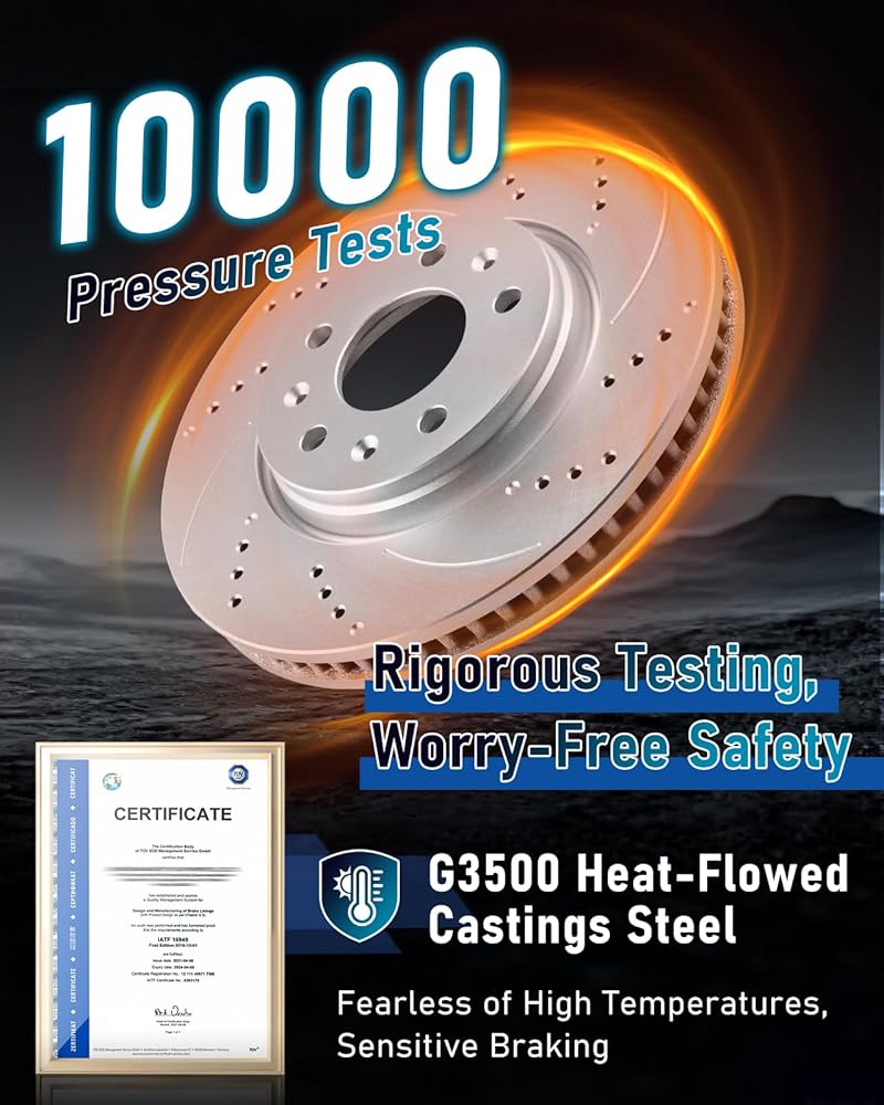 【ضمان صارم للجودة】لقد اجتازنا معيار SAE J431 وشهادة IATF 16949. نحن نضمن استخدام مواد ذات جودة أعلى من OEM لإنتاج مجموعات مكابح بديلة للسيارات التي تكون أكثر مقاومة للتآكل، وأكثر مقاومة لدرجات الحرارة المرتفعة، وأكثر مقاومة للبهتان وأكثر مقاومة للتآكل. لضمان متانة منتجاتنا لتعزيز ثقتك في منتجاتنا.