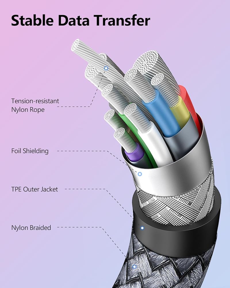نقل USB 3.0 عالي السرعة: كابل الارتباط متوافق مع USB3.0/3.1 gen1/3.2 gen1. معدل نقل بيانات يصل إلى 5 جيجابت في الثانية، مما يسمح له بتوصيل برنامج Oculus Link دون أي تأخير. توفر مزامنة بيانات مستقرة وسريعة لتجربة لعب سلسة دون انقطاع أو تأخير.
