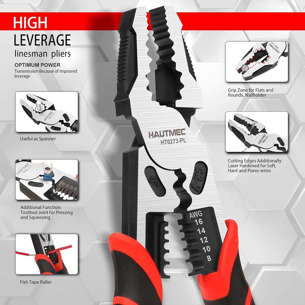 HAUTMEC 9 "كماشة Lineman، كماشة مجموعة الرافعة المالية العالية 4 في 1 متعددة الوظائف أدوات Lineman الثقيلة HT0273-PL
