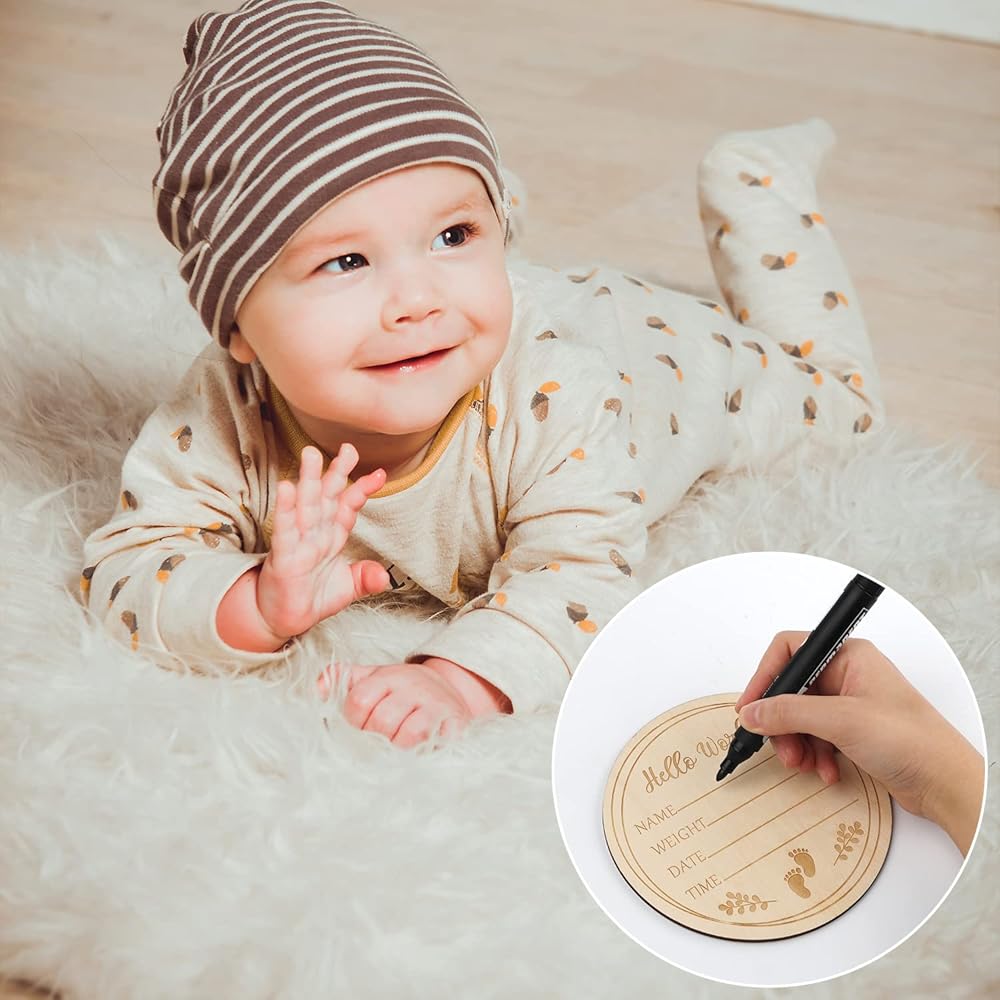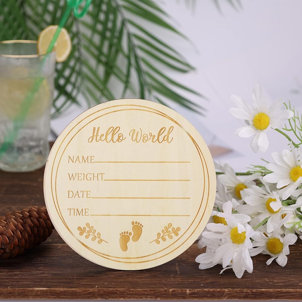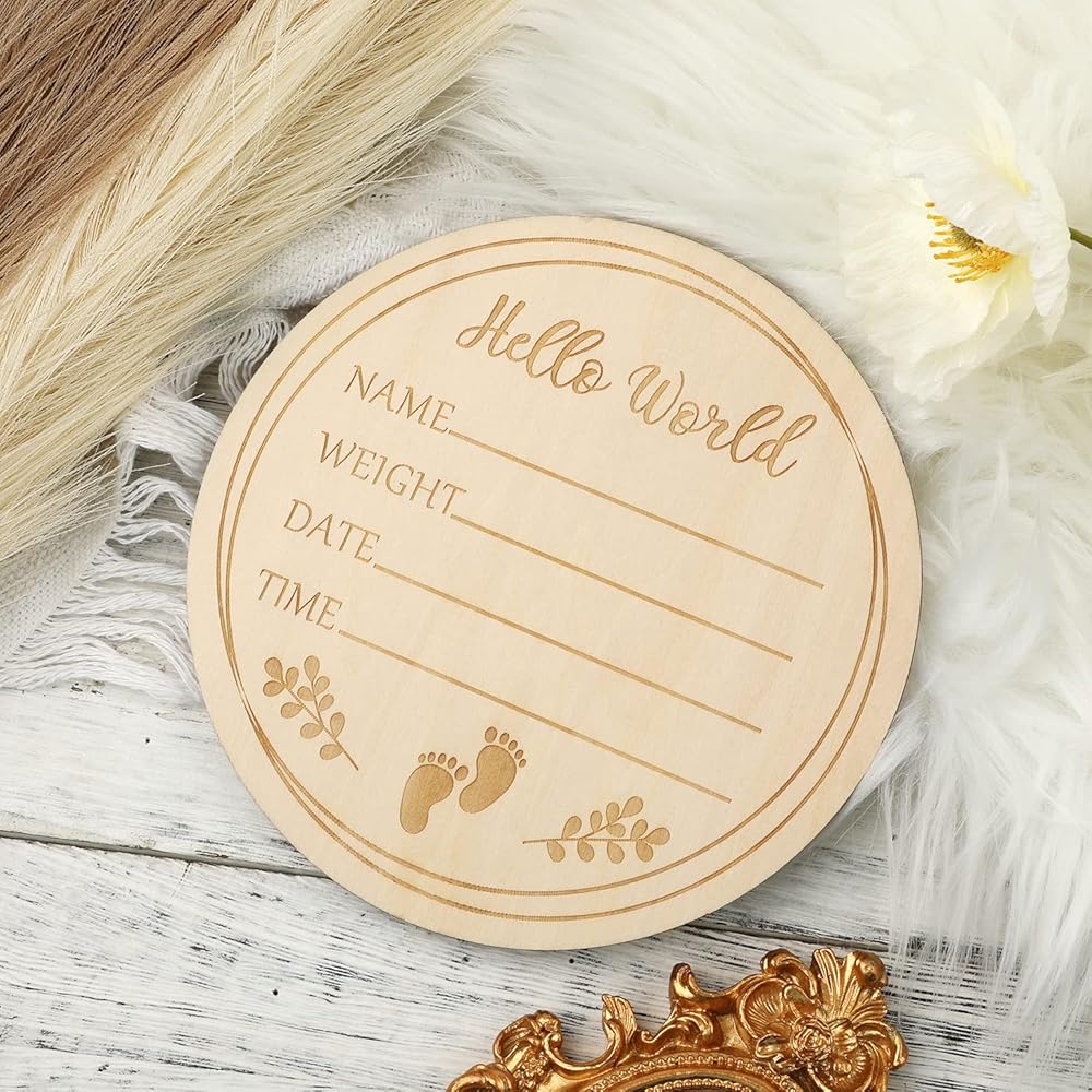 Considerate design: The wooden round welcome sign is easy to grasp for babies. The rounded edges prevent babies from getting injured. The text and patterns on this new baby sign are engraved by laser to ensure its long-lasting function.