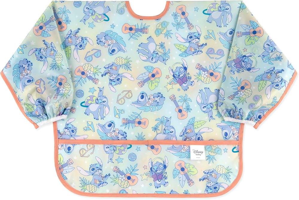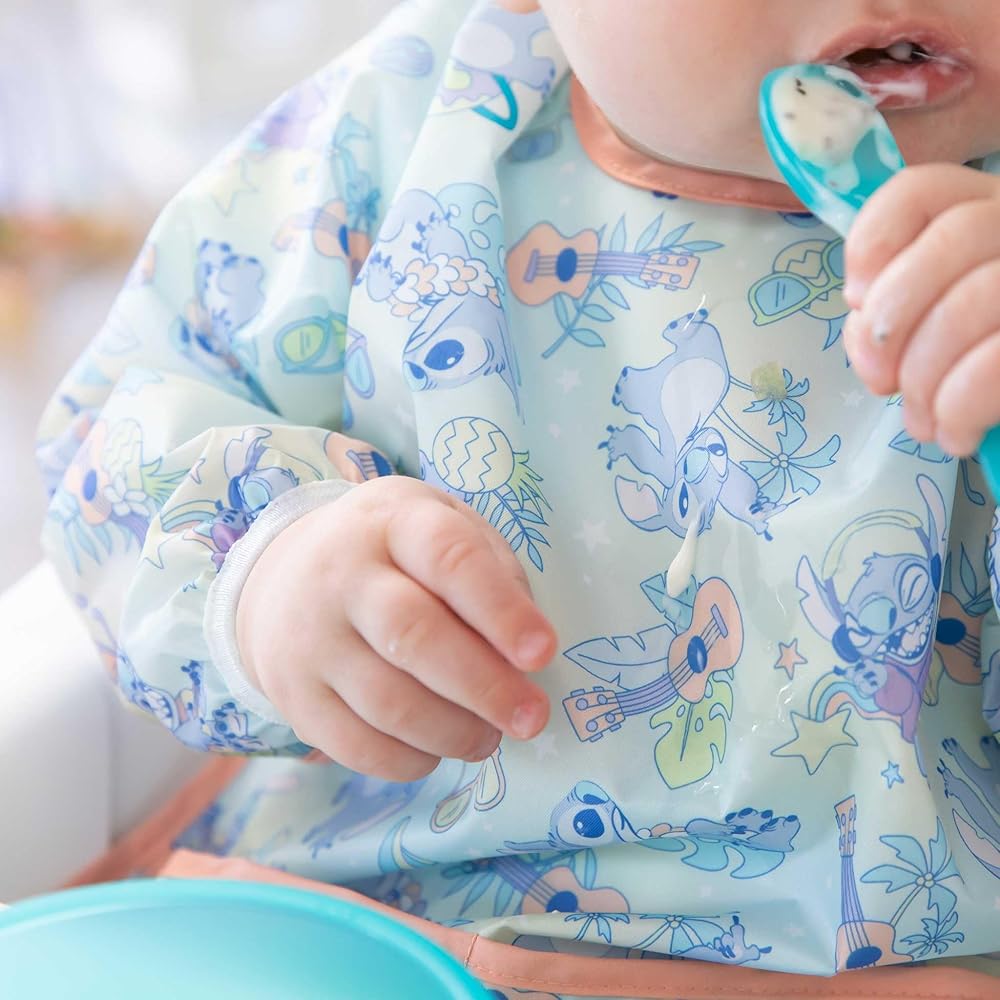 توفر لك من الفوضى - مثالية للتغذية الذاتية، توفر المريلة ذات الأكمام الطويلة تغطية واسعة لمساعدتك على توفير ملابسك؛ مصنوع من نسيج بامكينز الأصلي المقاوم للماء - 100% بوليستر مدمج مع مادة TPU؛ يمكن غسله في الغسالة لسهولة التنظيف